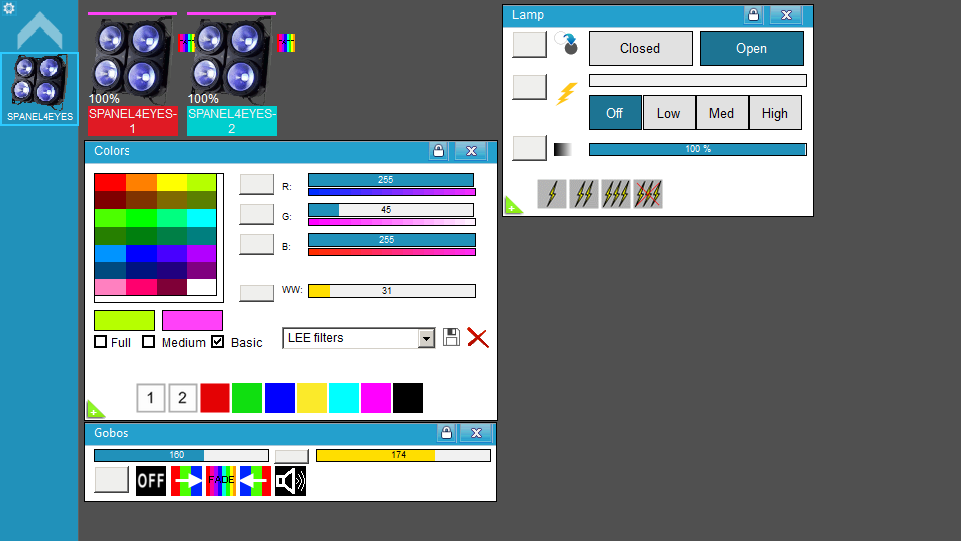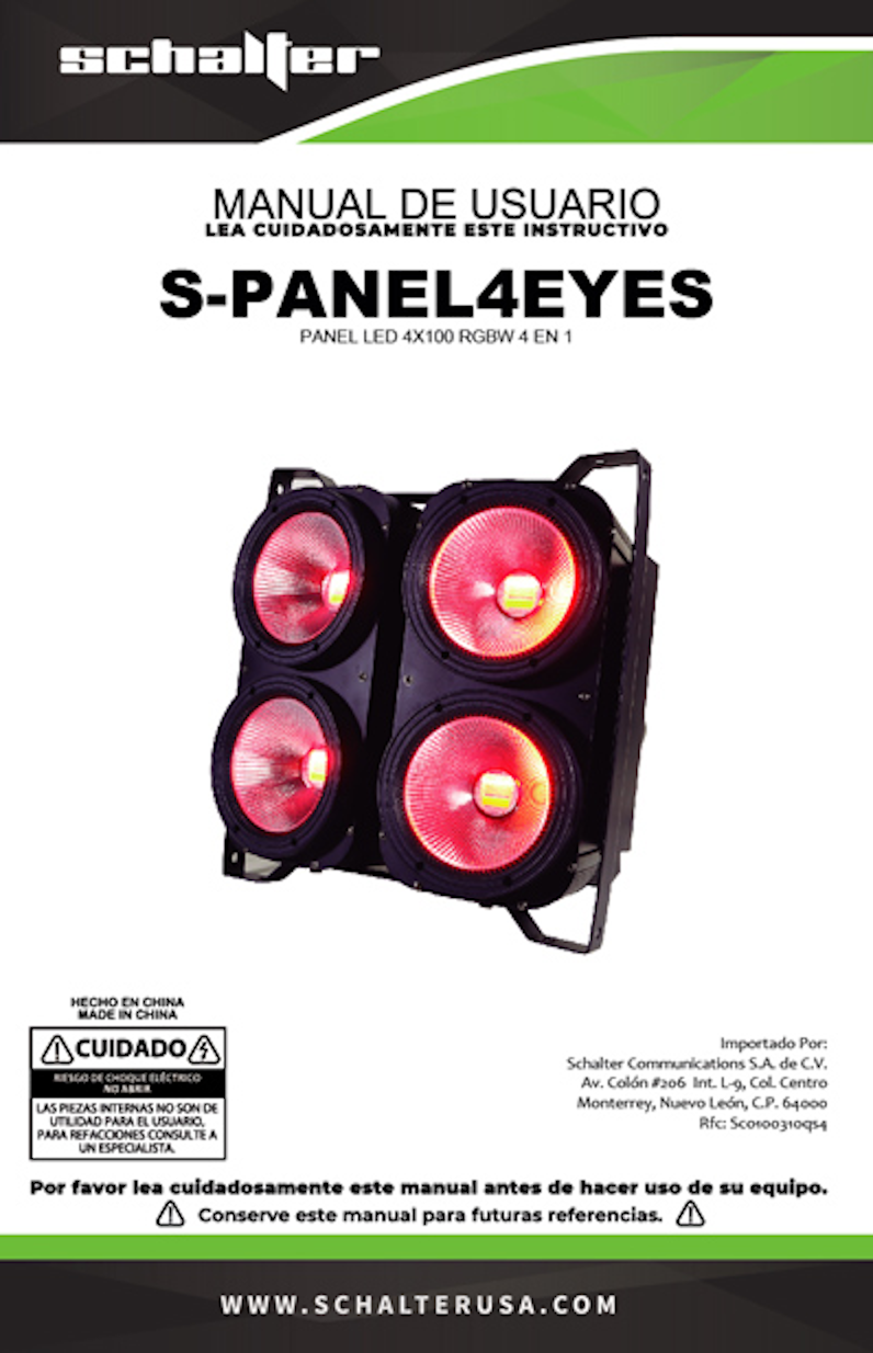 Librería para Freestyler DMX del Blinder Led 4x100W RGBW "S-PANEL4EYES" de Schalter ( 8CH ).