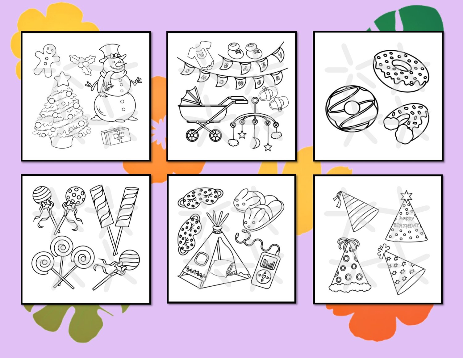 Party Vibes - 6 Bold & Cute Coloring Pages