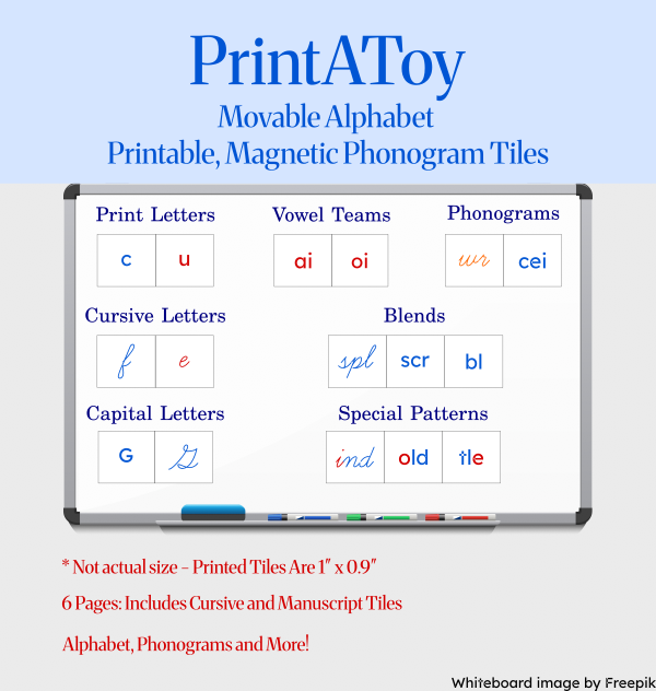 Printable Magnetic Movable Alphabet and Phonogram Tiles By PrintAToy