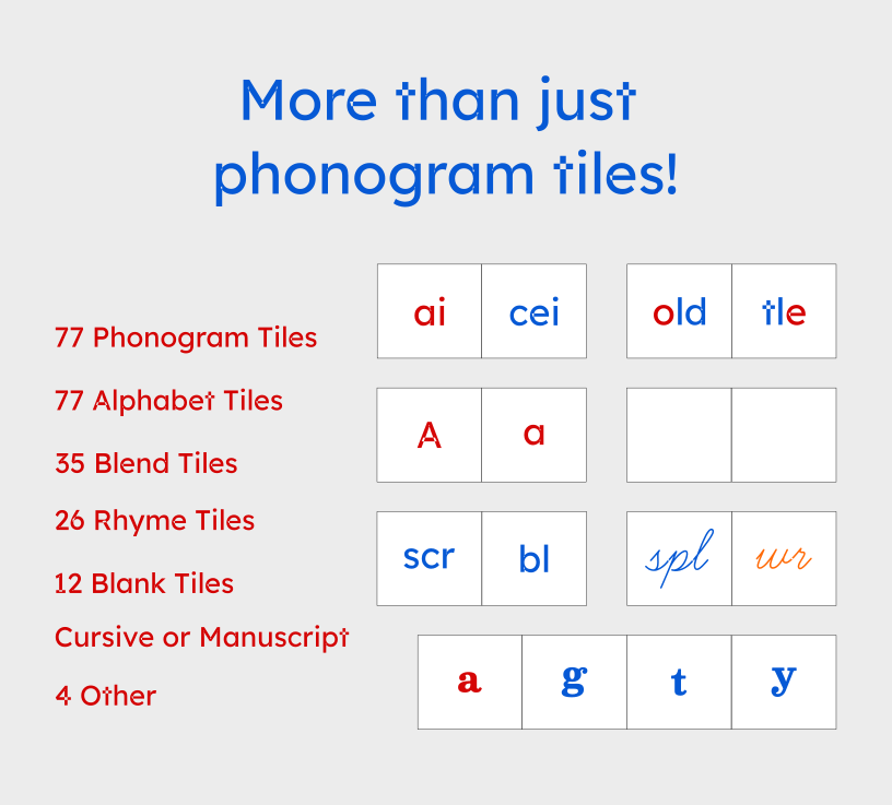 - Phonogram Tiles (75 Logic of English phonograms + extras)