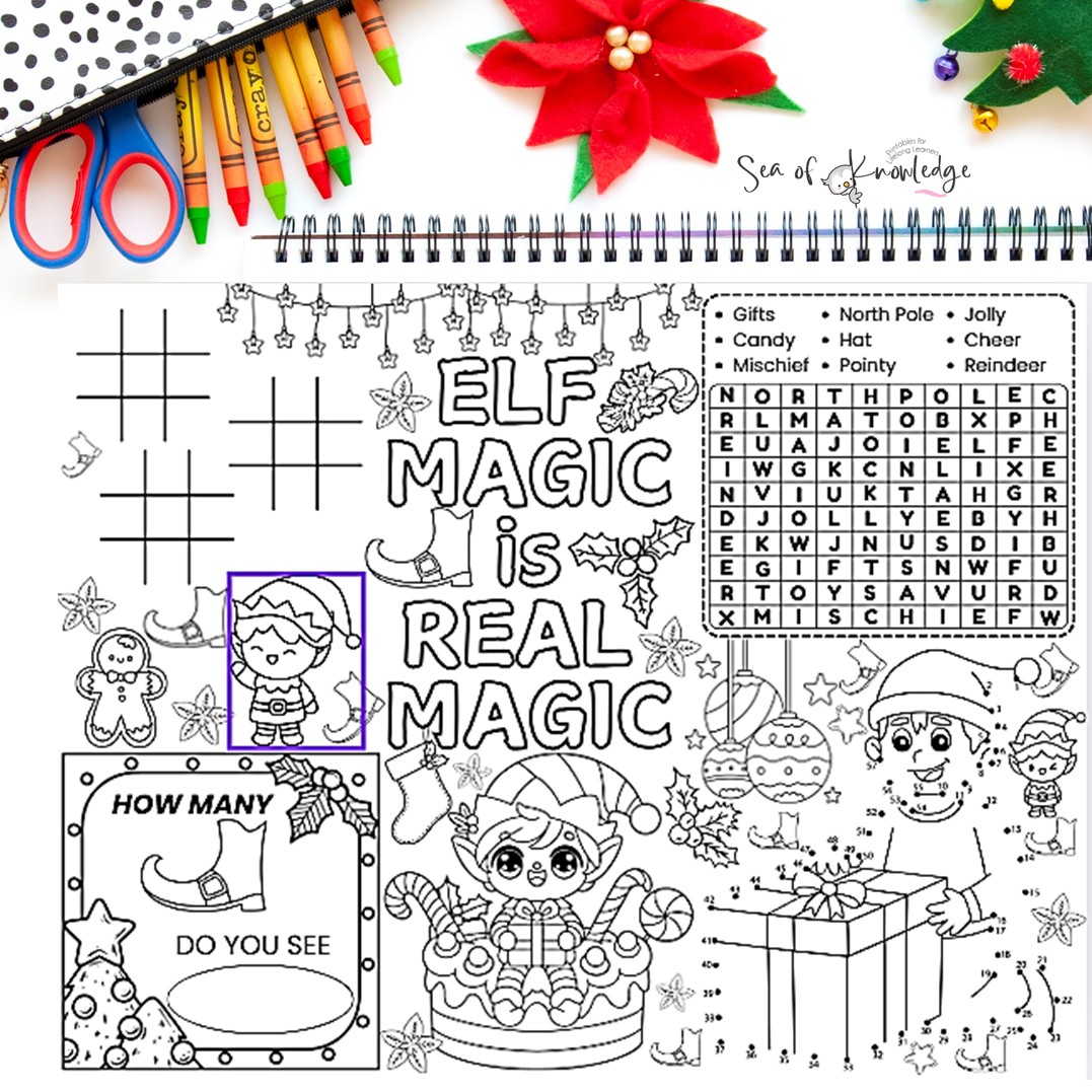Bring some festive fun to your classroom, holiday party, or family table with these adorable Elf Christmas Activity Placemats. Each mat is packed with hands on learning fun that keeps little learners engaged while celebrating the magic of the season.