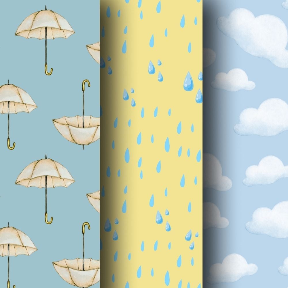 Rainy Days Playful Seamless Pattern Set | Cute Weather Prints | 3000px High-Resolution Digital Paper