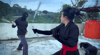 After a brief meditation she starts to fight the 4 guys together. kicks, many kicks and punches. She disposes of them but after, she has to deal with another guy using a nunchaku. This time Chintya will use her nunchaku as well in an epic fight.