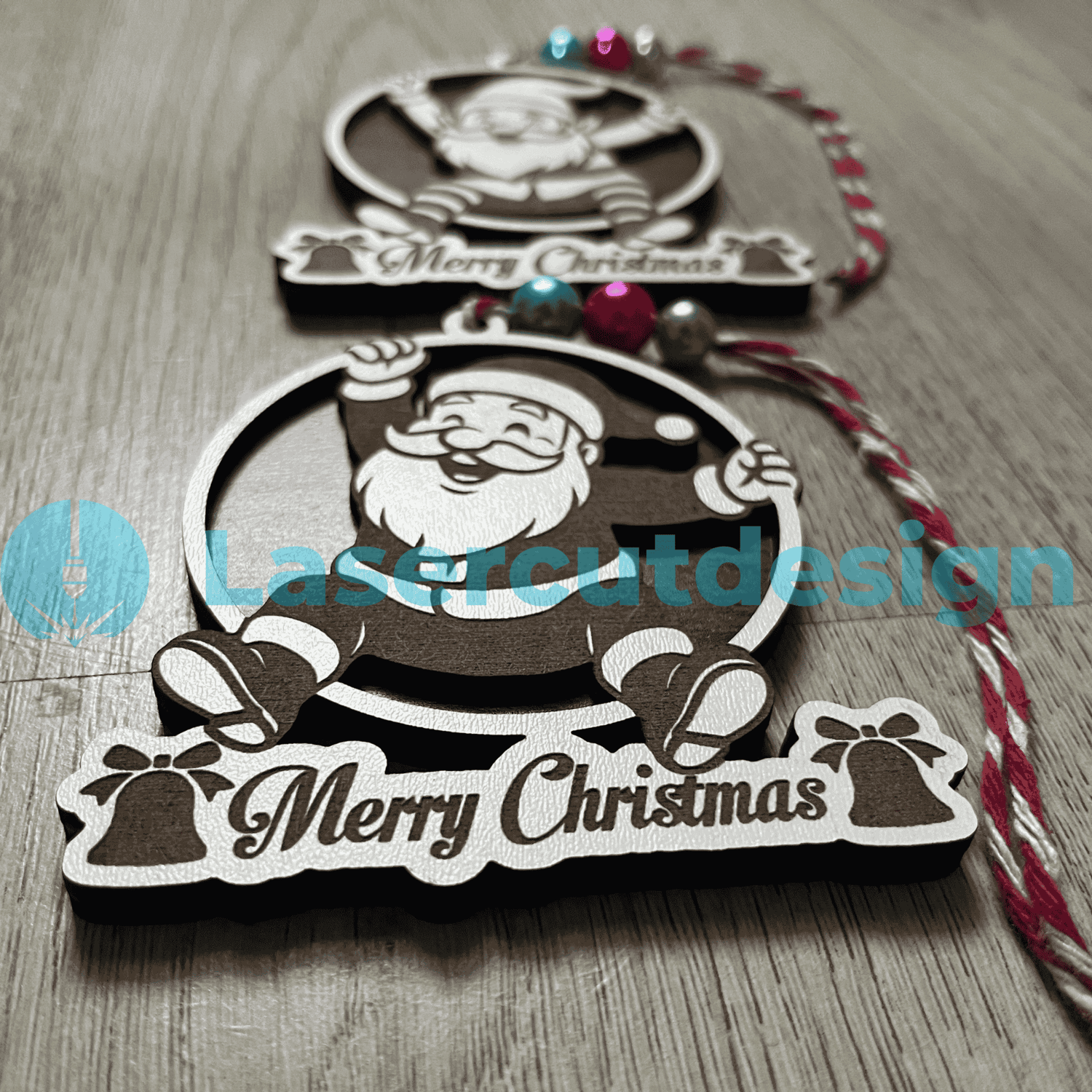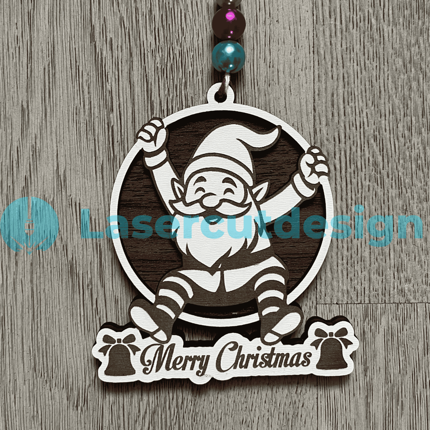 Christmas Ornament SVG – Santa & Gnome Laser Cut File, Merry Christmas Decoration SVG DXF AI