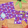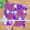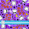 Sarcastic and sweary halloween ghosts wearing witch hats, with middle fingers moons and stars on purple.