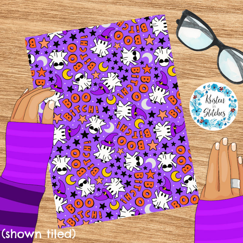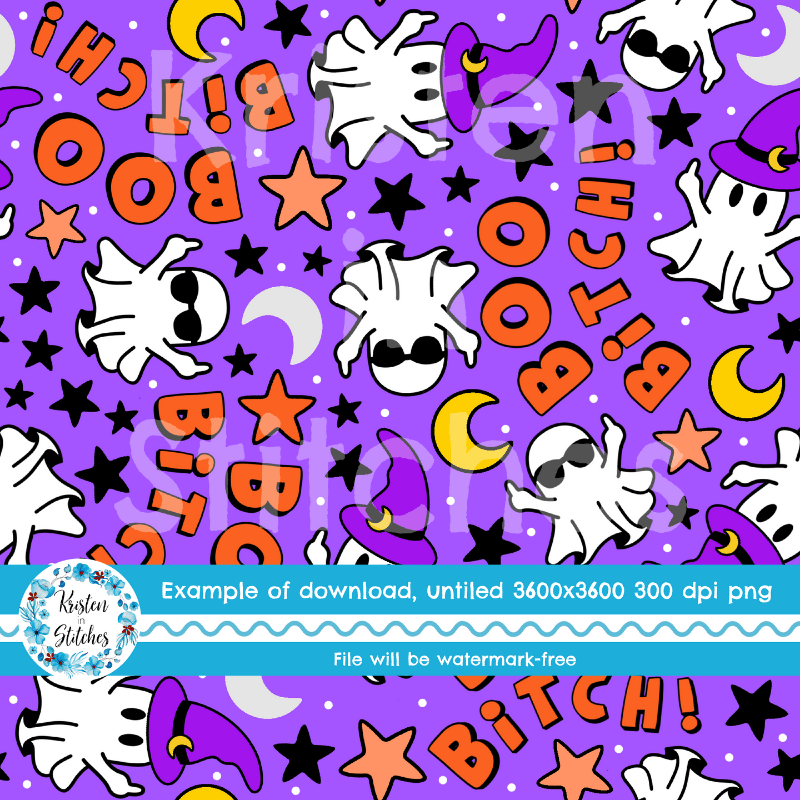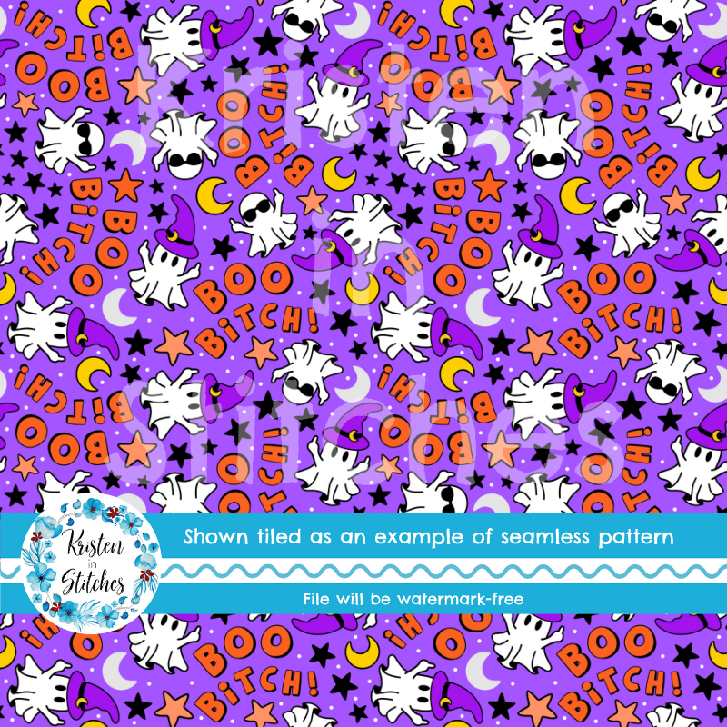 Boo Bitch! Sweary Sarcastic Halloween Ghosts Seamless Pattern
