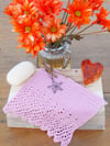 Fairy Godmother's Spa Cloth is knit sideways, creating a pampering and luxuriant spa cloth. The pattern is named after a vintage lace stitch pattern, Godmother's Edging. This is a good beginning lace project and makes a lovely gift.