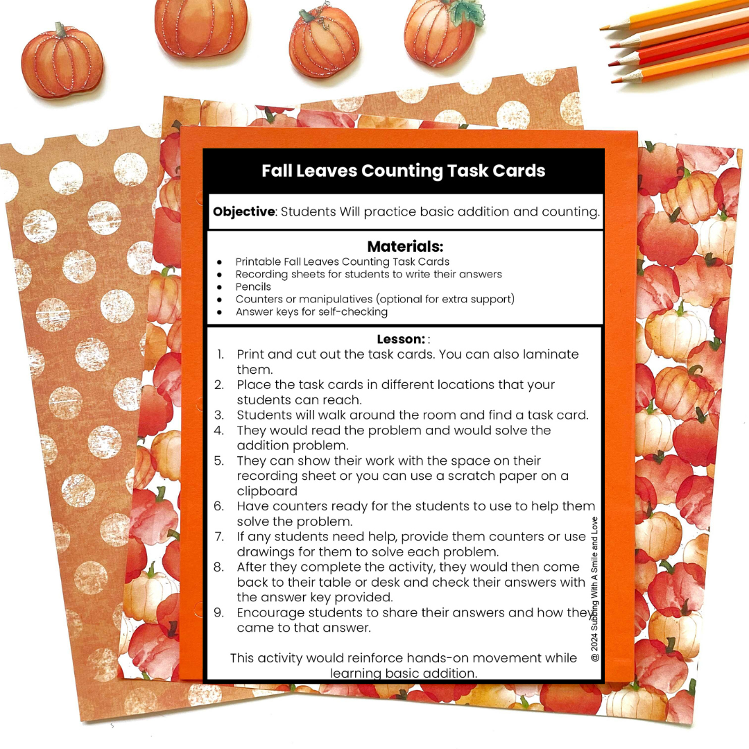 Looking for a seasonal math activity that helps your students master counting? Look no further! Our Fall Leaves Counting Task Cards are designed to make math practice engaging, hands-on, and perfectly suited for the fall season.