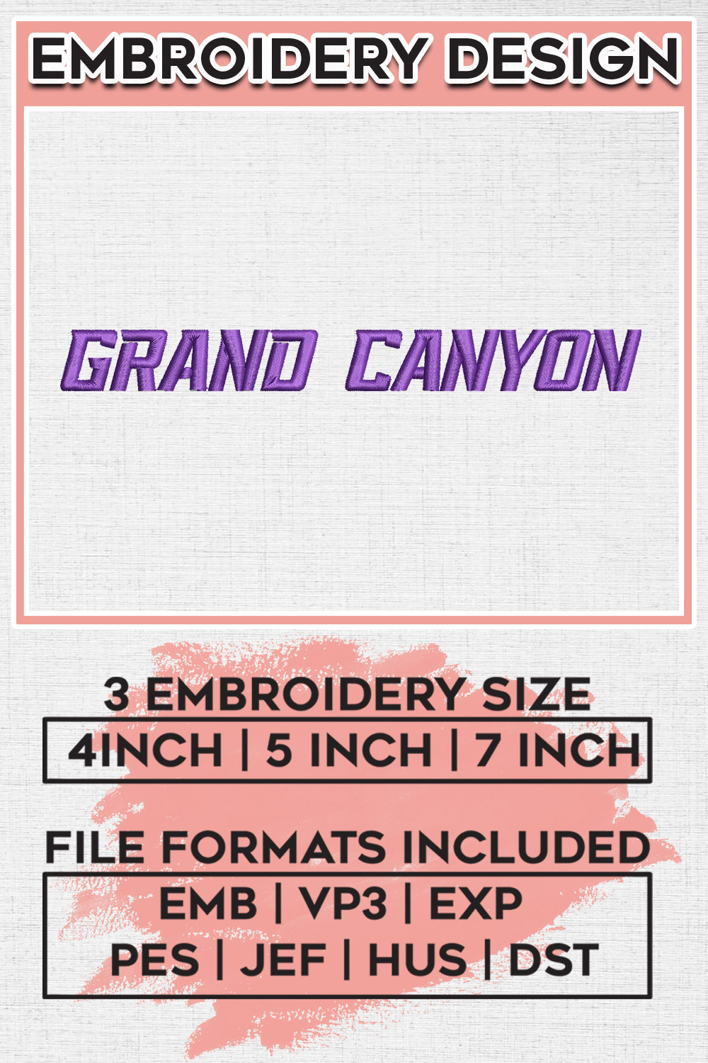 Grand Canyon Lopes Wordmark Logo Embroidery Designs, NCAA Grand Canyon Lopes Embroidery Designs, NCAA Logo Machine embroidery designs, Ncaa GCU Lopes Logo, Digital Download