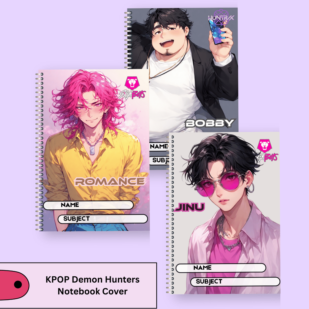 - 📓 Notebook Covers – Eye-catching designs that give your notebooks a KPOP Demon Hunter twist.