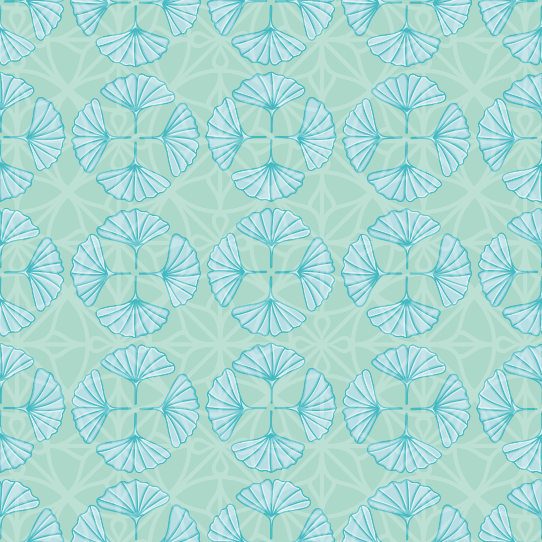 Vector Ginkgo greenery repeatable pattern. Aqua fan-shaped leaves seamless illustration background.
