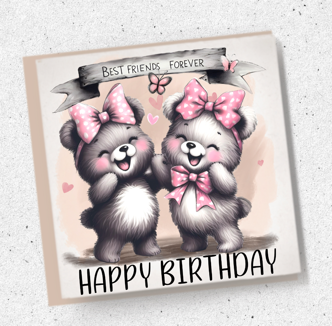 Besties, best friends, bear friends, sublimation design, print. 10 bear pairs, background, plaque, ground shadow, 9 PNG.