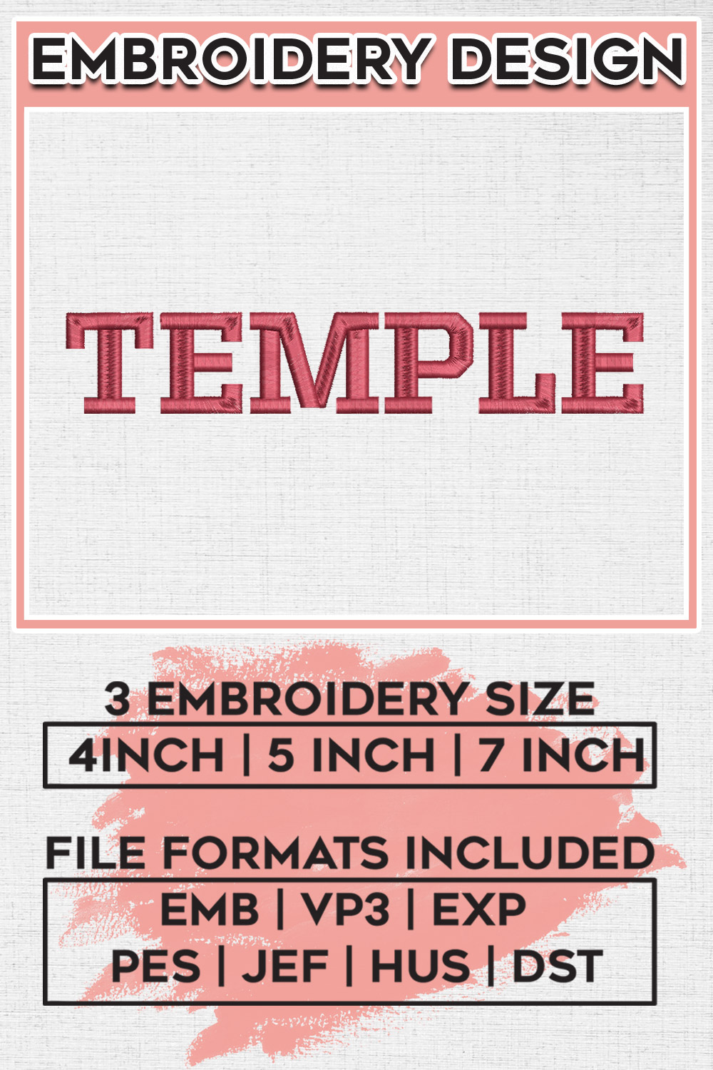 NCAA Temple College Football Team Writing Logo Embroidery Designs, NCAA Temple Owls Machine Embroidery Files, NCAA Logo embroidery designs, Ncaa Temple Owls Logo, Digital Download