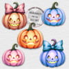 Halloween pumpkins n bows. Incl text files + optional background. Personalise. 18 PNGs