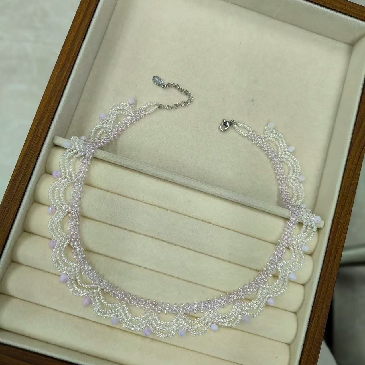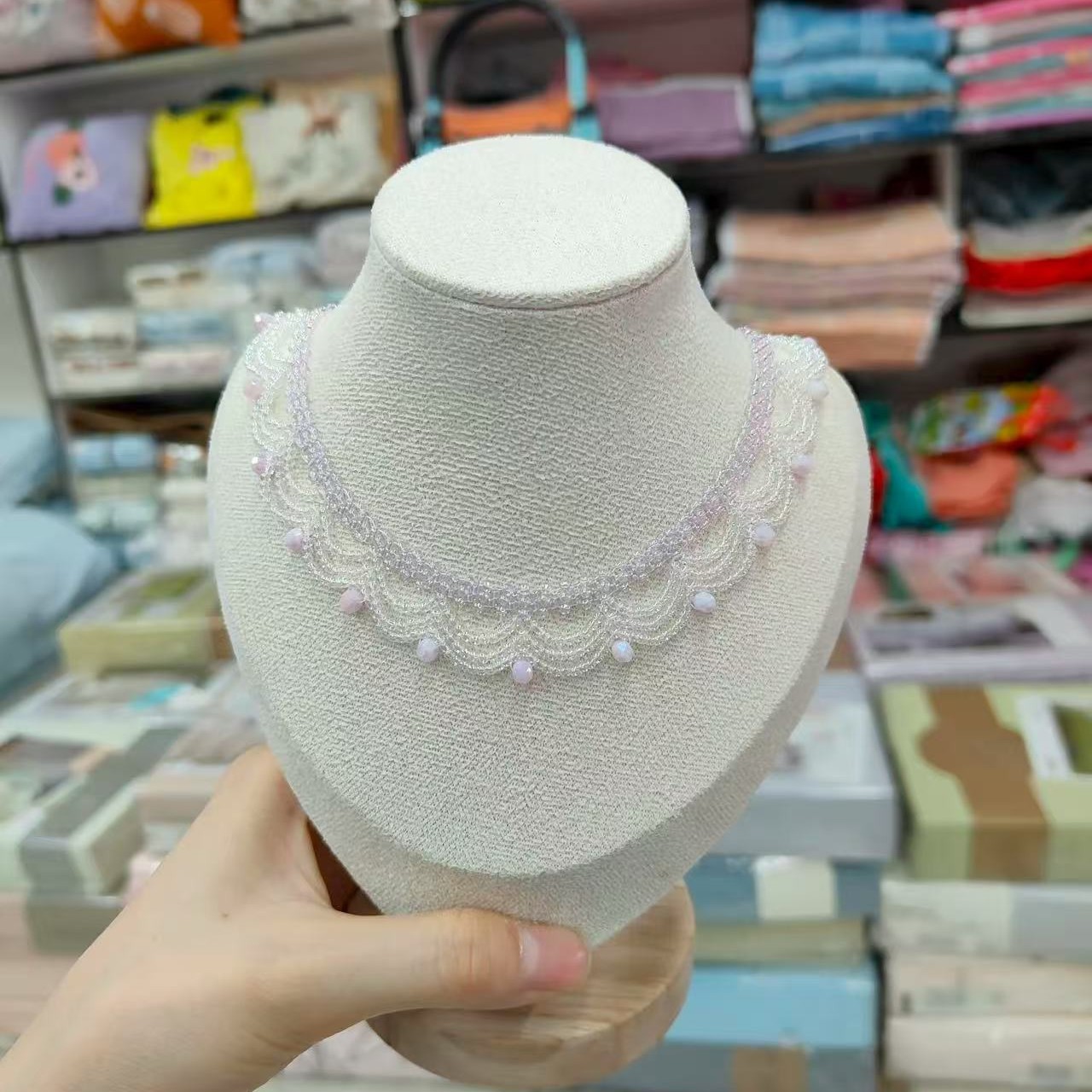 Handmade lace beaded dreamy purple French court style multi-layer necklace