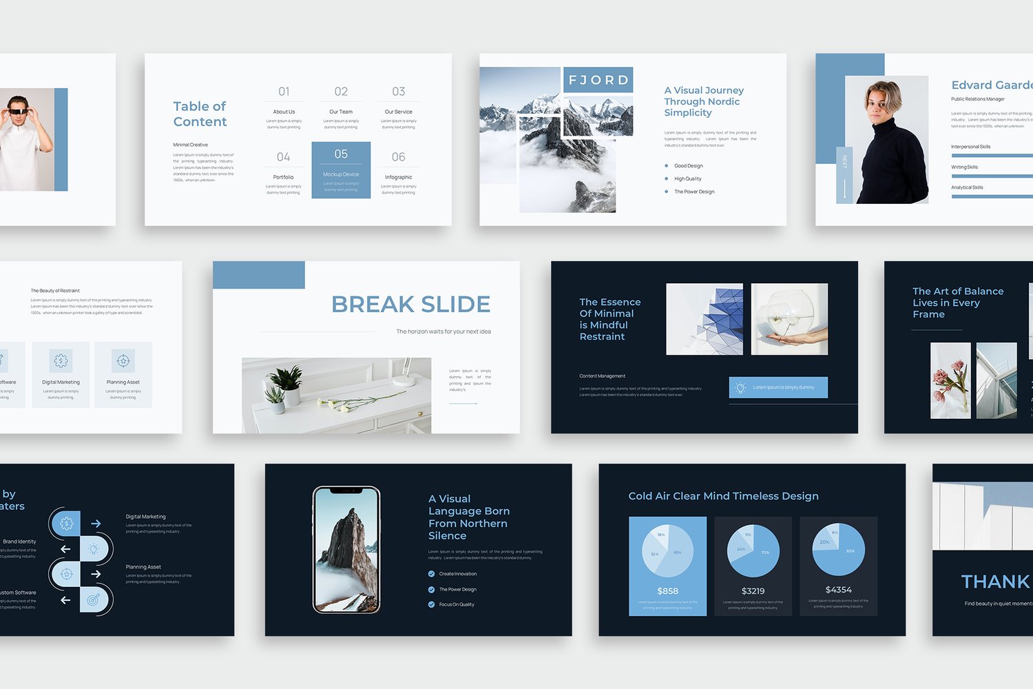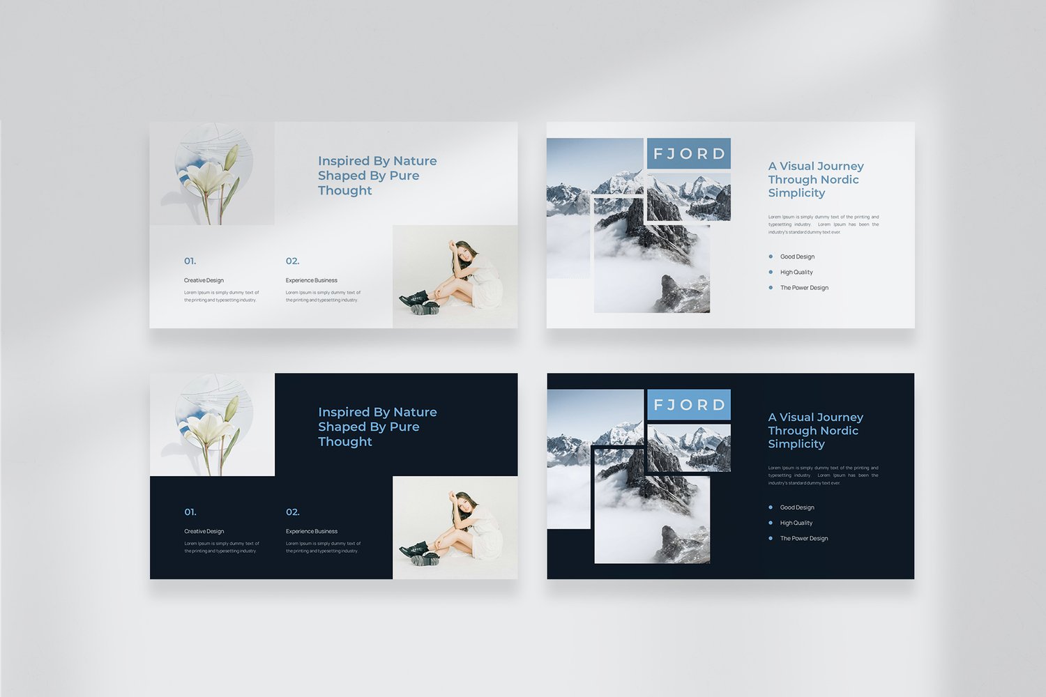 Each slide reflects the harmony of Scandinavian aesthetics. Clean lines, calm colors, and meaningful balance.