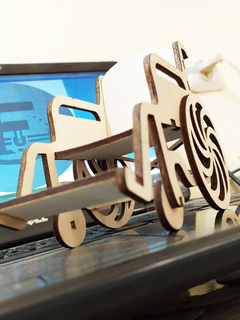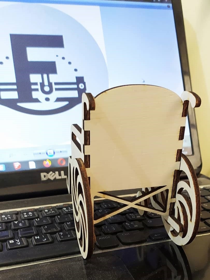 File formats: SVG, DXF, PDF, PNG.Suitable material: 3.6mm plywood.Dimensions: Height 115mm, width 75mm, depth 135mm.Usage: Creating a small wooden wheelchair.Note: The sale of the digital design file itself is prohibited, but the sale of the finished product made from this file is permitted.