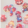 Ces stickers illustrés, parfaits pour les amoureux de l'univers de Mario, mettent en avant les personnages emblématiques des jeux Nintendo. Dans cette collection, on retrouve Mario, Luigi, la Princesse Peach, et même le fameux champignon rouge, tous dessinés avec une touche artistique unique qui les rend adorables et vibrants.