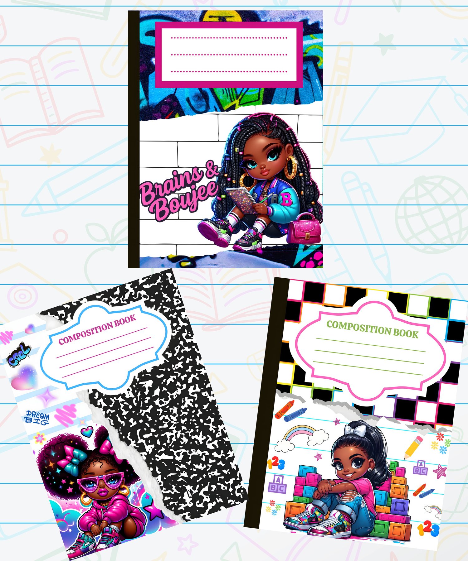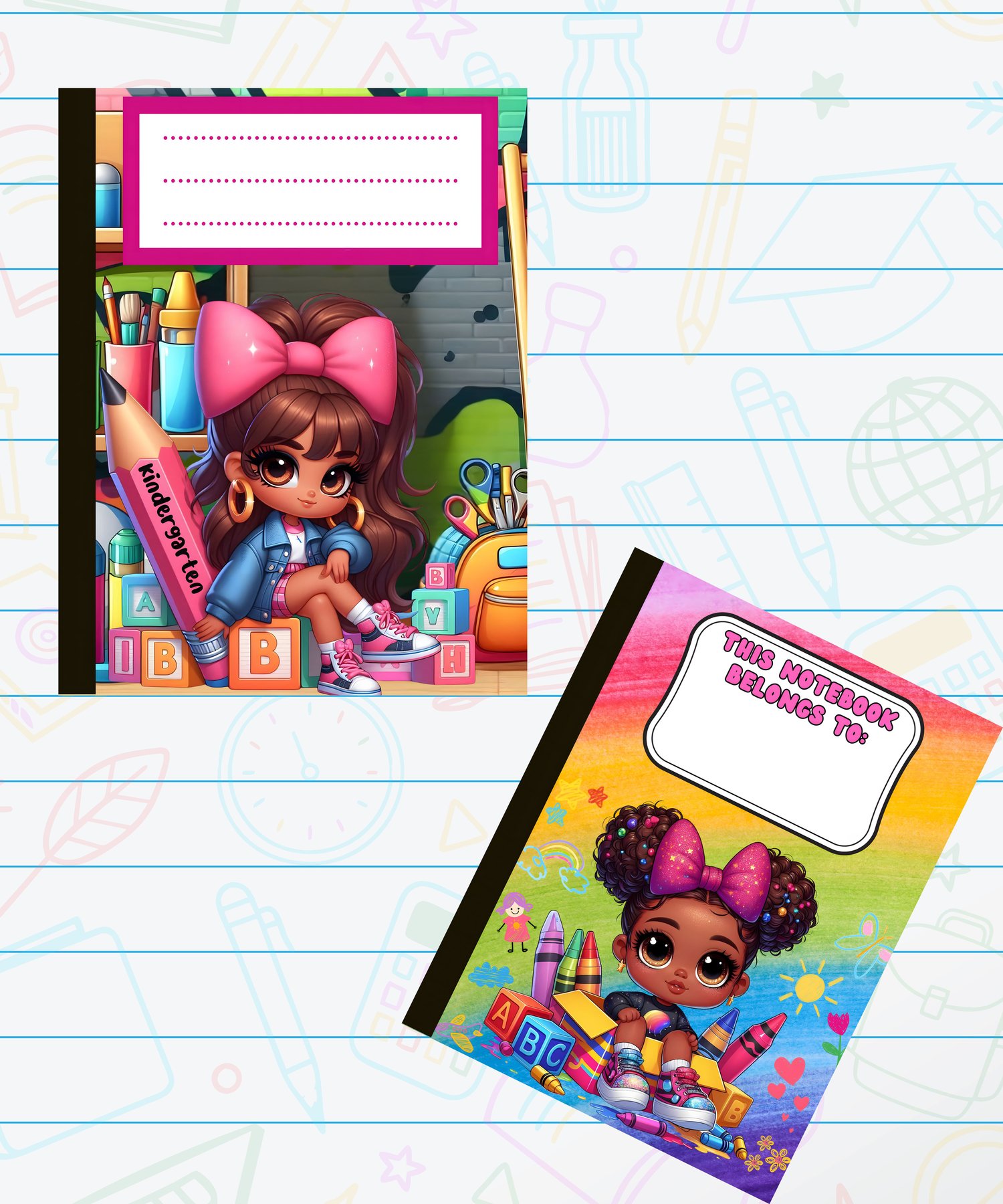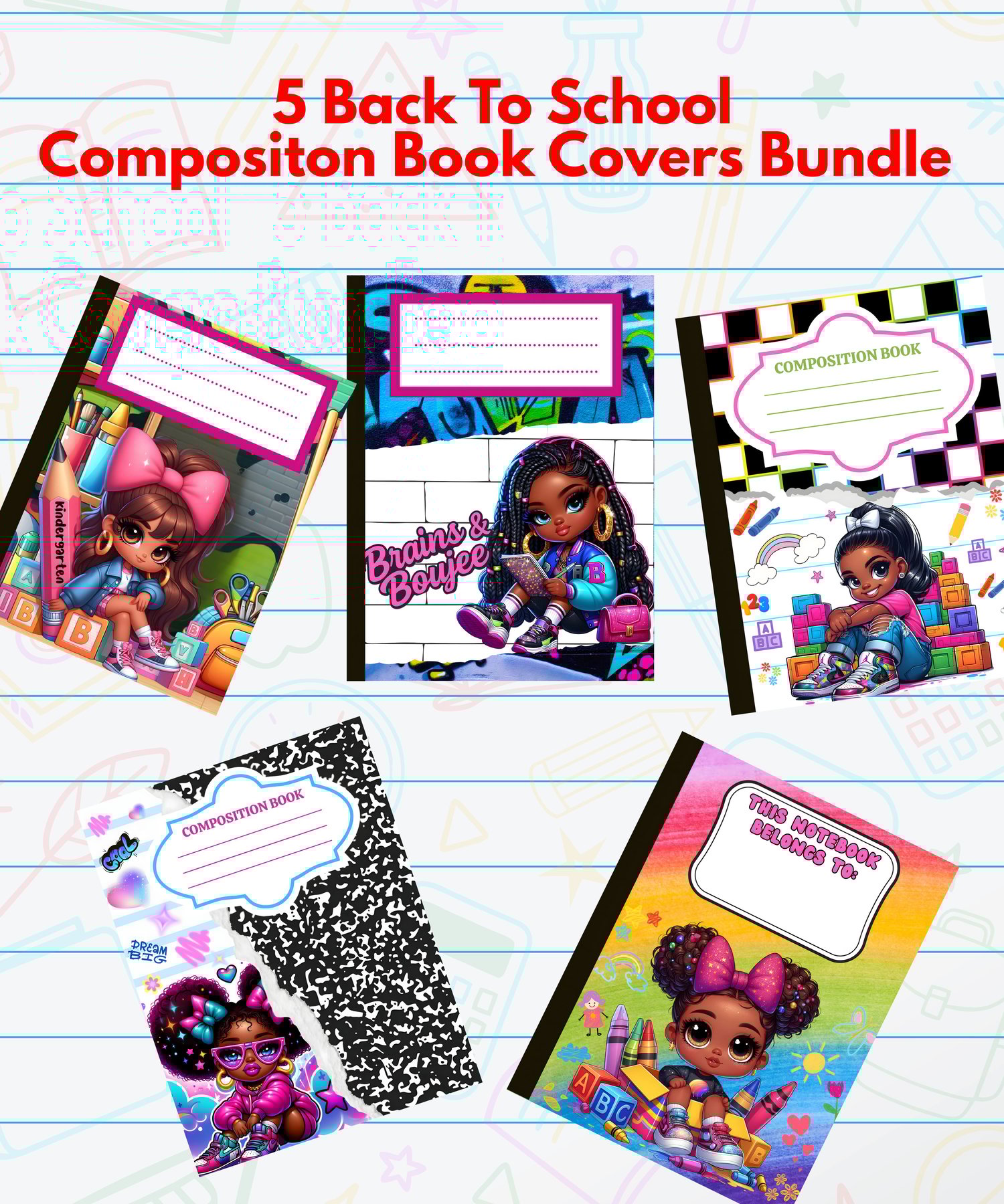 Add a splash of fun to school days with this adorable bundle of noneditable, printable composition book covers! Featuring 5 vibrant designs with confident, stylish girls and playful backgrounds, these covers are perfect for personalizing your composition books with flair. Great for back-to-school, homeschooling, or classroom vibes!