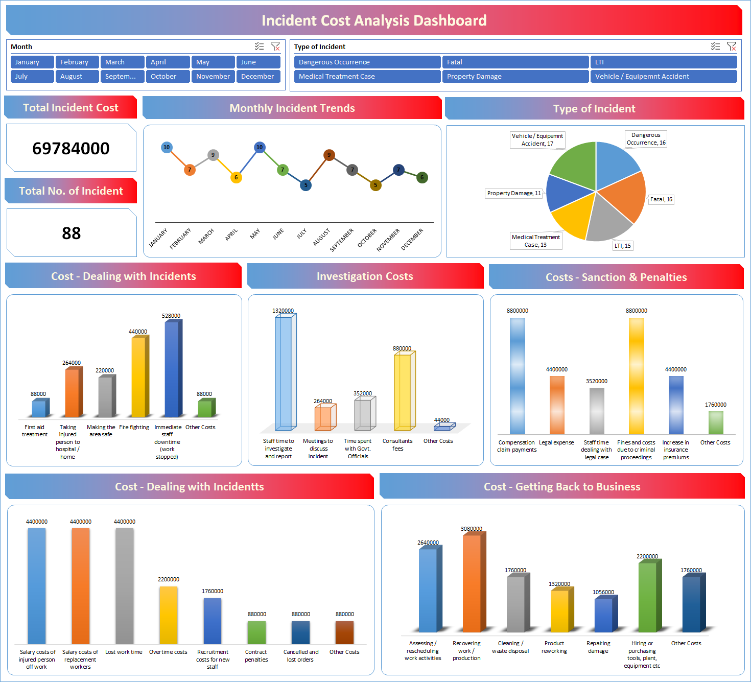 Incident Cost Analysis Excel Dashboard