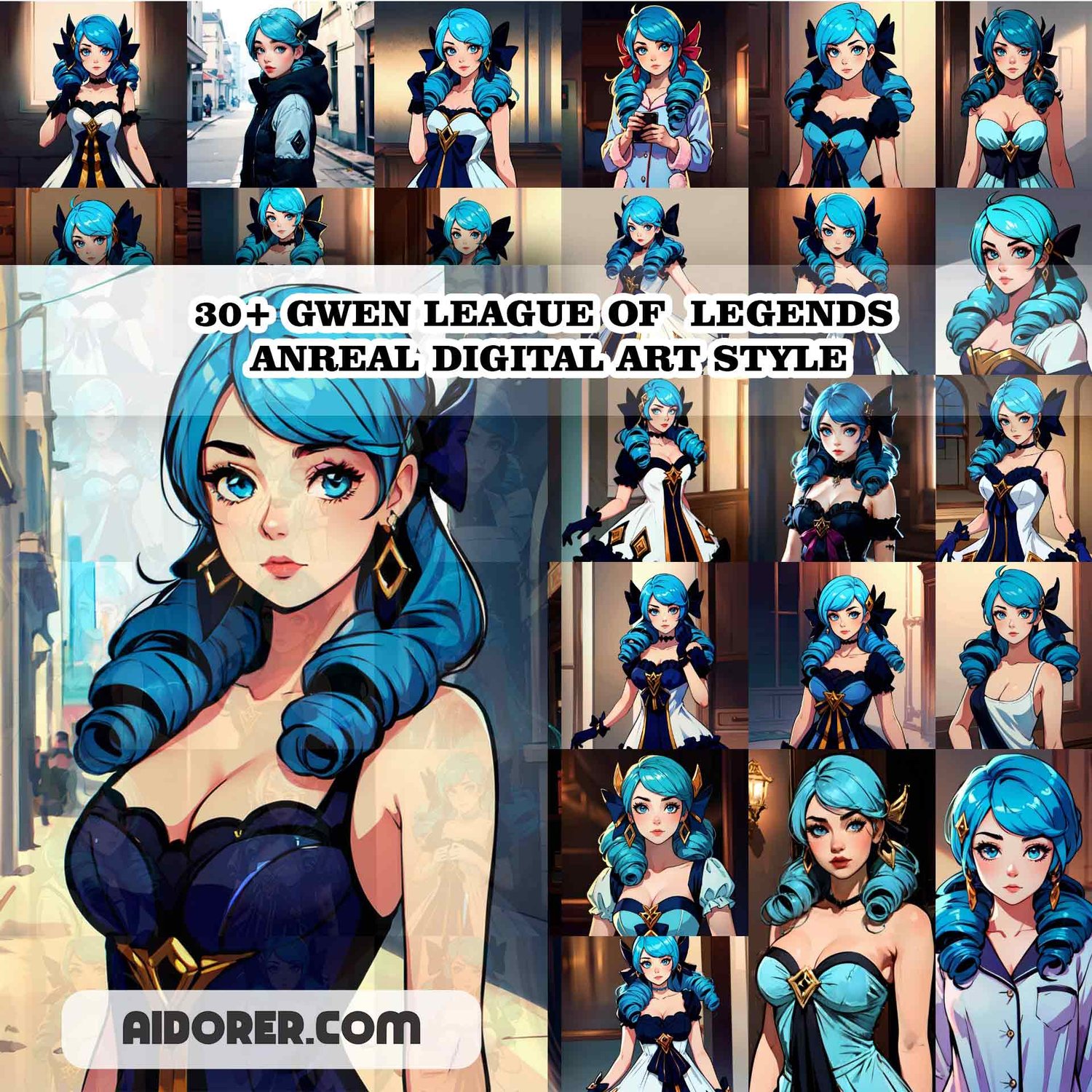 30+ GWEN LEAGUE OF LEGENDS ANREAL DIGITAL ART STYLE