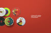 Flat-lay CD disc mockup set with 6 isolated discs, editable artwork, Smart Objects, and independent lights and shadows.
