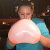 Rowy challenges herself to blow up the pink heart shaped balloon as big as possible until it pops.