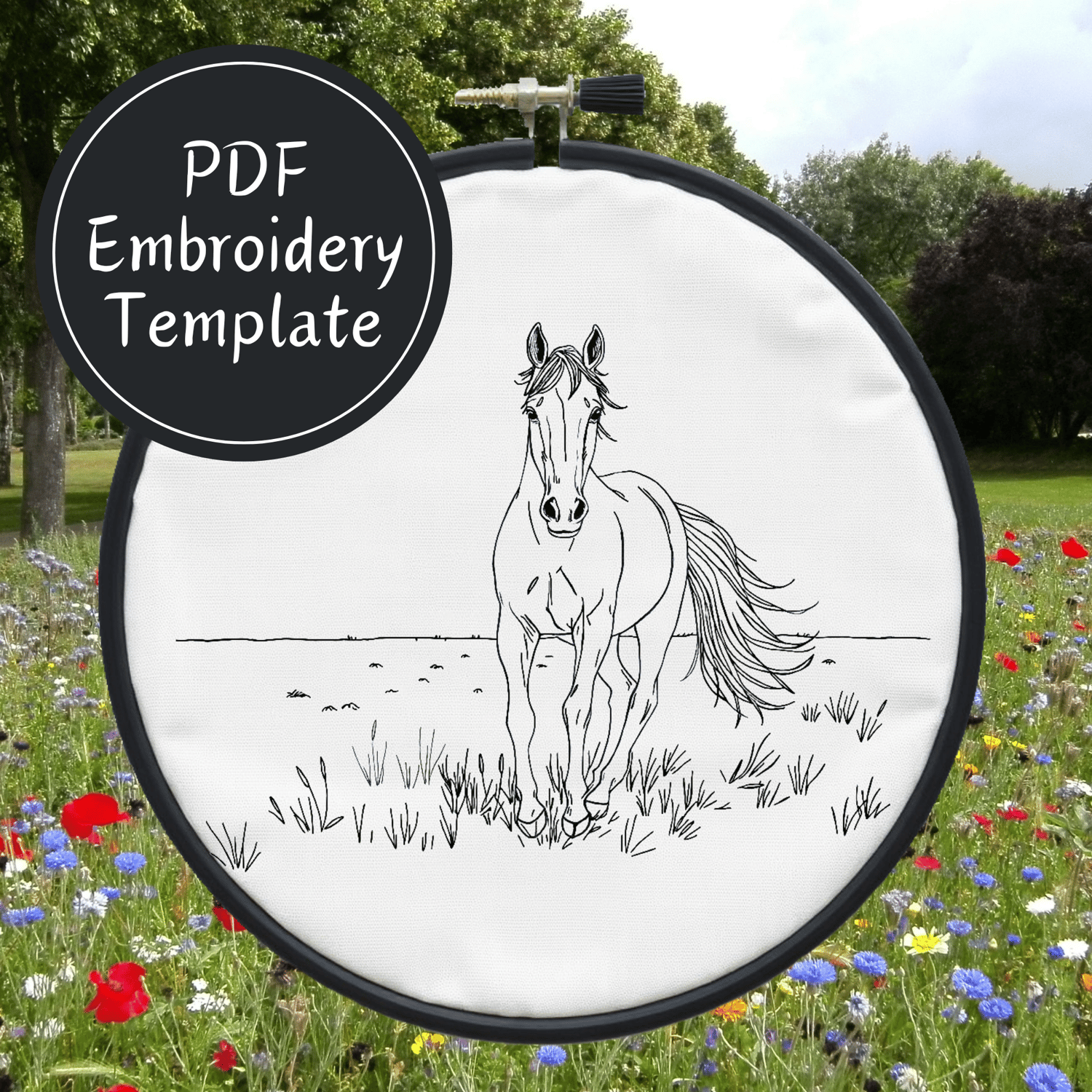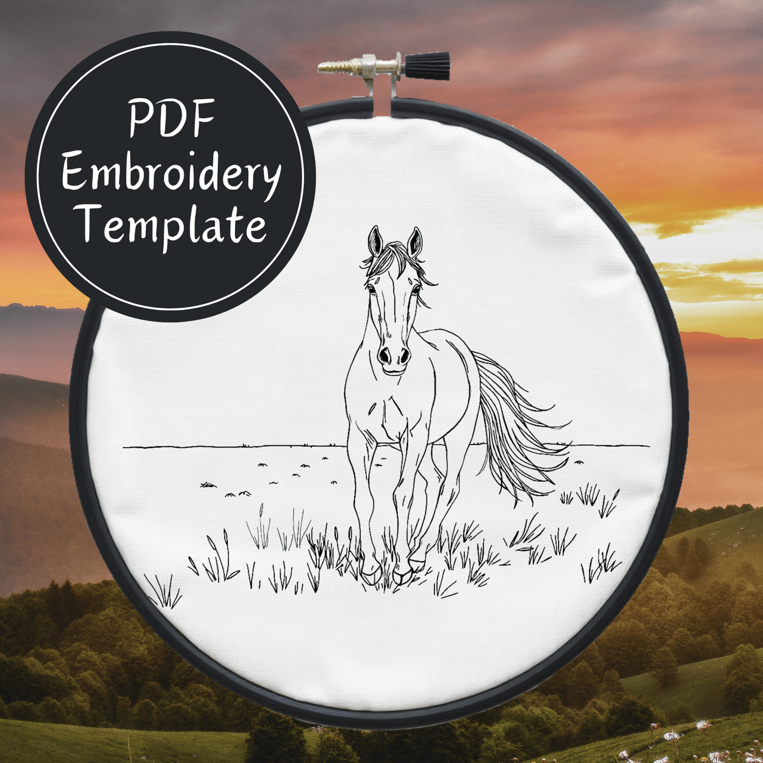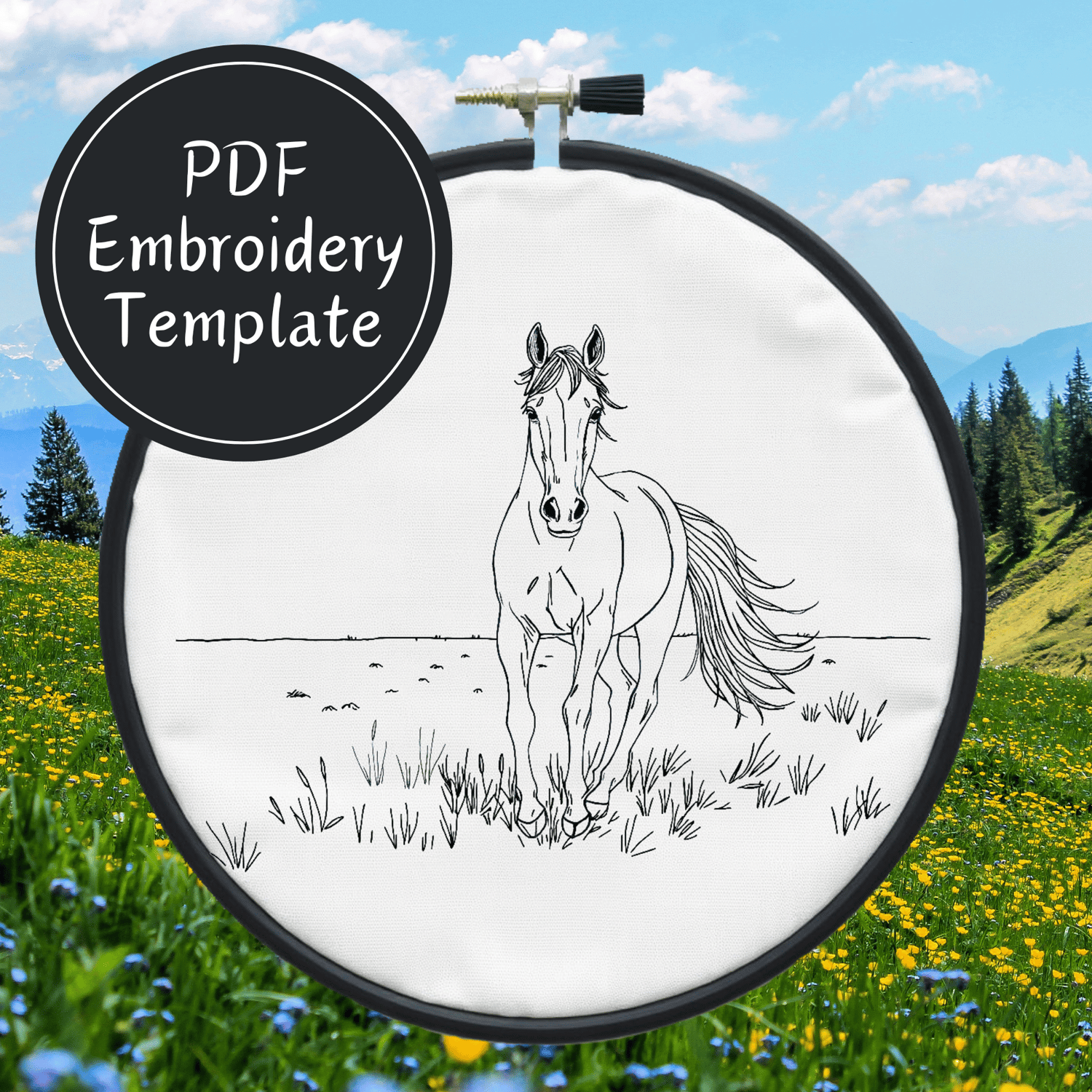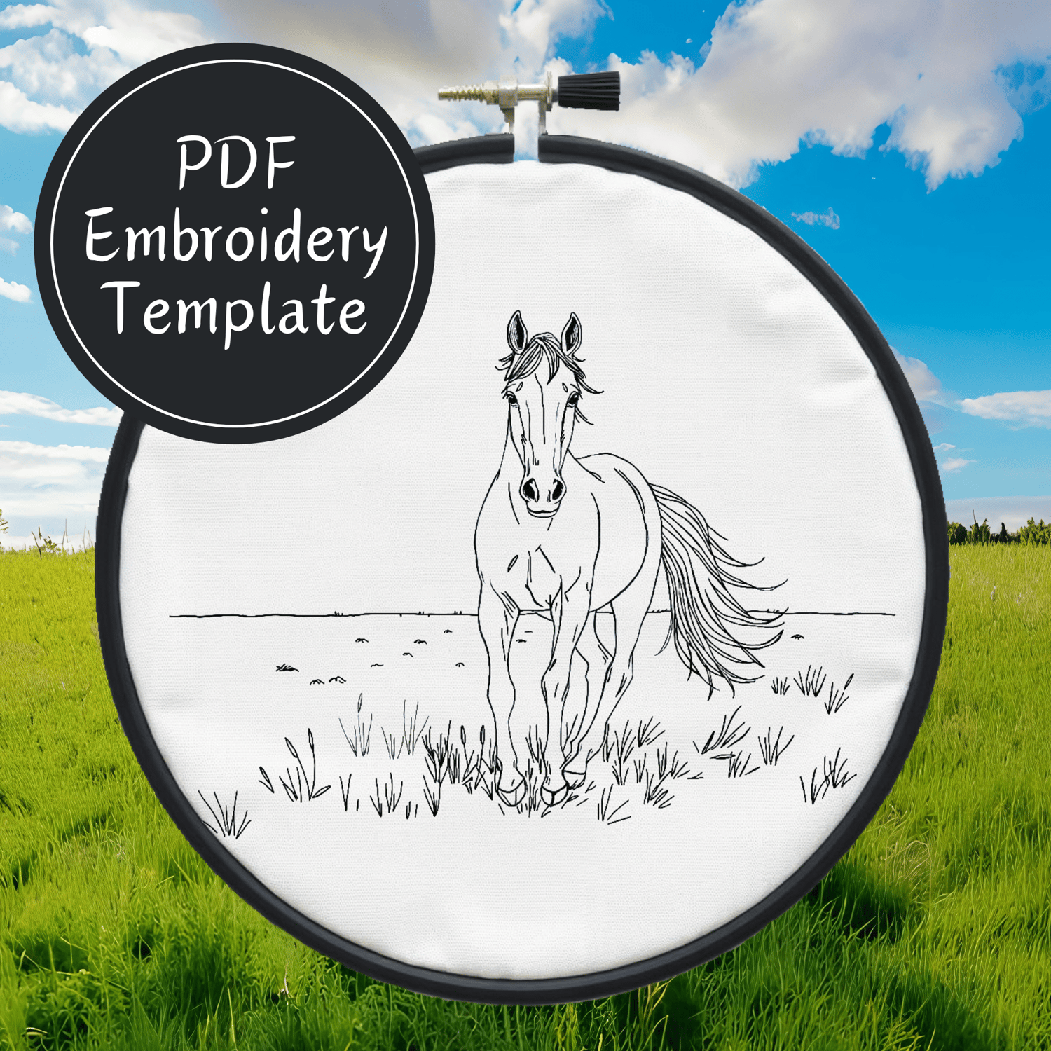 Horse Running Hand Embroidery Pattern DIY Embroidery
