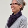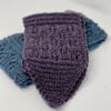 Samples shown are knitted in Chilton Wensleydales DK Hand-Dyed Tweed (100% Wool, 160m/ 175yds per 100g skein) in shades Bittersweet (purple) and Forget Me Not (blue).