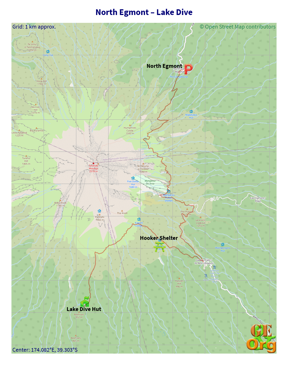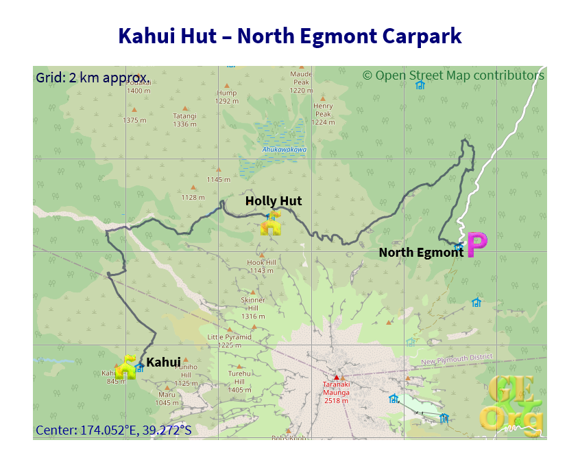 Around the Mountain Circuit starting and finishing at North Egmont Carpark GPS Set consisting of four zipped archives each with one GPX track, one GeoJSON track and one OpenStreetMap,