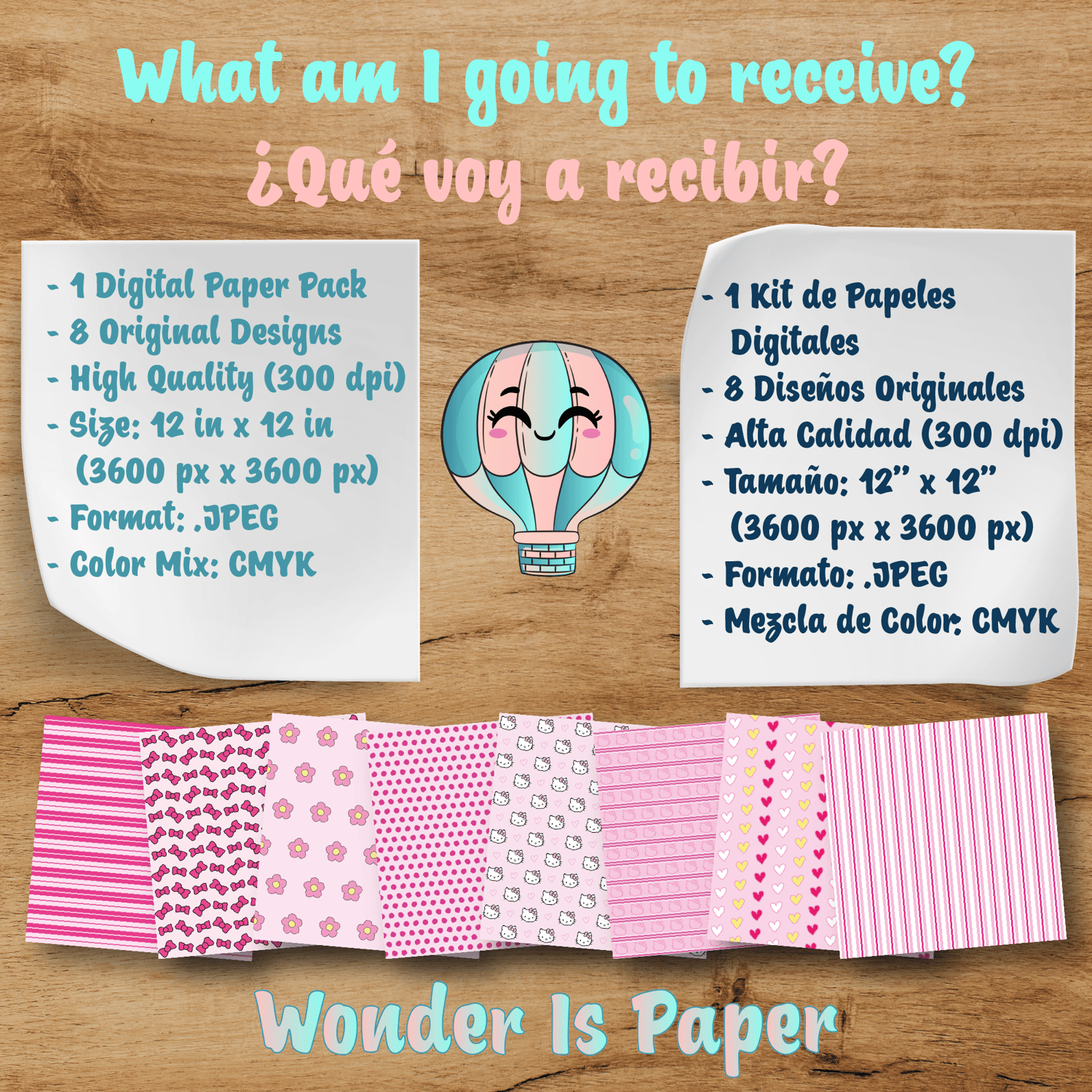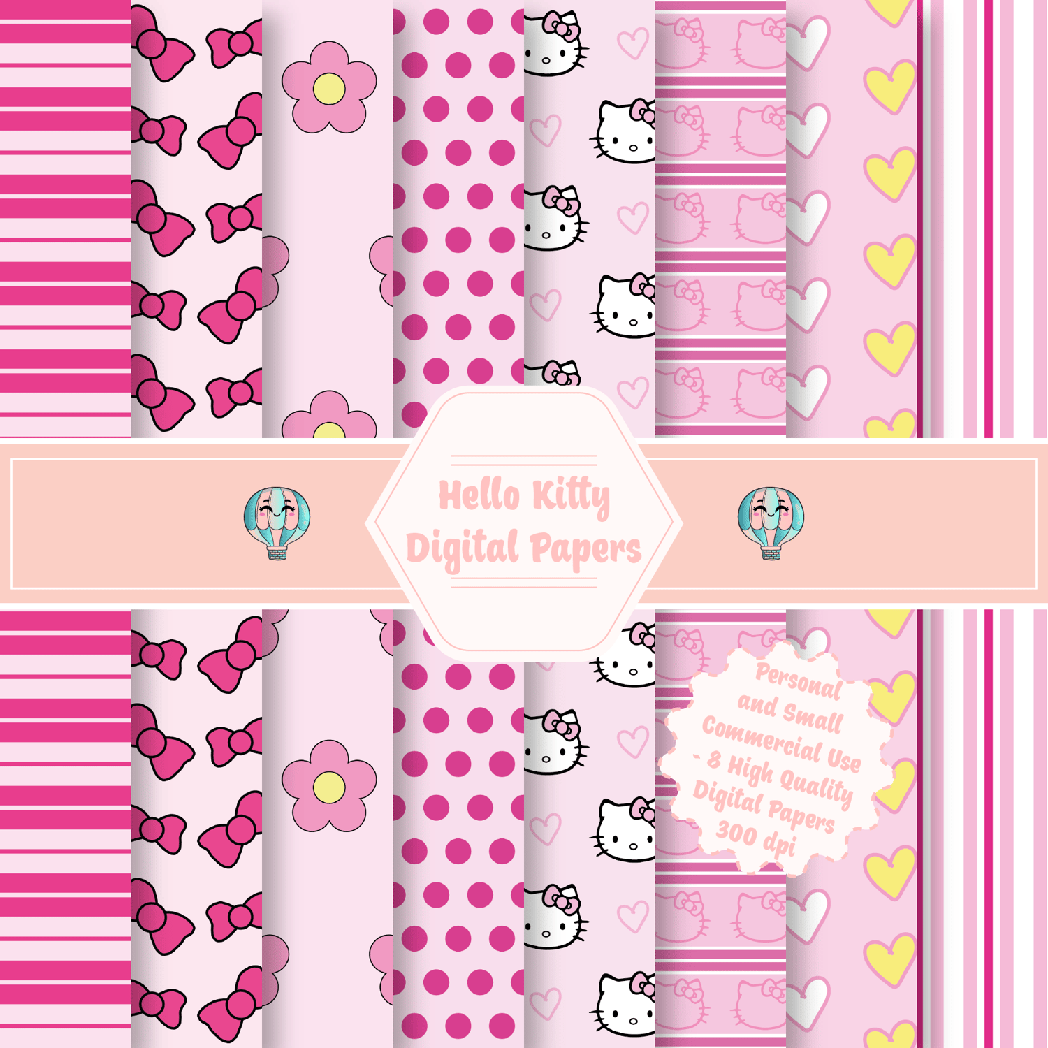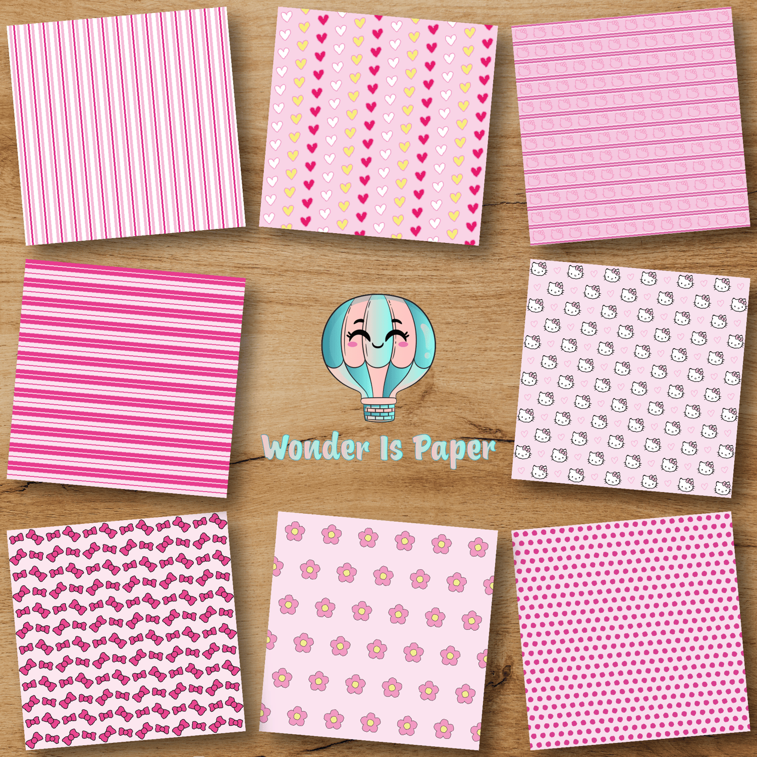 HELLO KITTY Digital Papers - High Quality Designs - 8 Patterns - 12 in x 12 in - 30 cm x 30 cm - Ready to Print and Cut