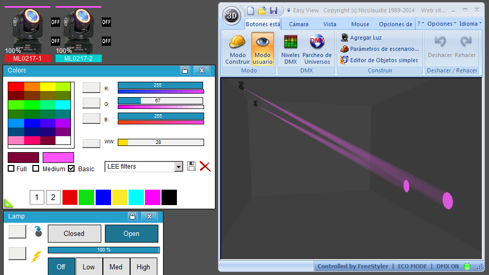 Esta Librería SSL2 está optimizada para trabajar con Magic 3d Easy View. Es decir para ver una representación 3D de las secuencias que estemos realizando con Freestyler, QLC+ o cualquier otro soft que se conecte con Magic 3d.