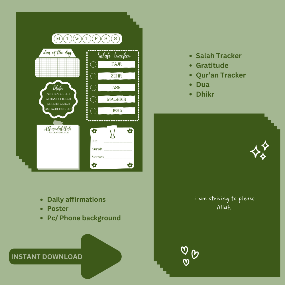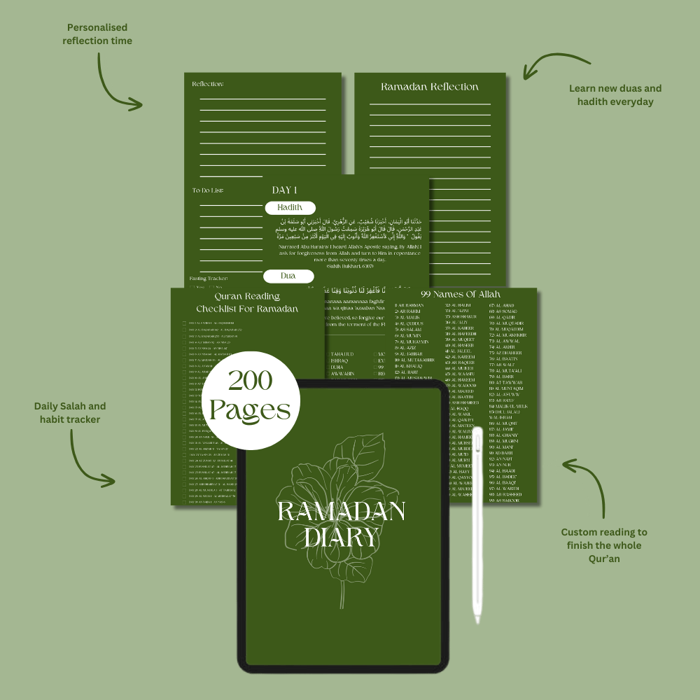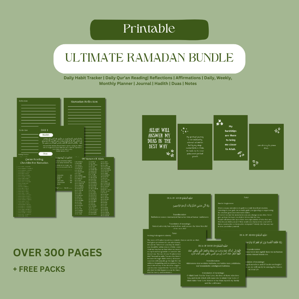 Prioritising Islam in your life is the foundation of every effective routine. Introducing our Ramadan Bundle, expertly designed to appeal to the Muslim lifestyle. By incorporating Islamic traditions into your everyday routine, this calendar will help you stay organised, focused, and profoundly connected to Allah.