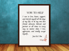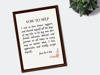 This 'Vow To Self' affirmation inspirational poster print is designed to transform, uplift, and inspire. This powerful affirmation reminds us that wholeness comes from within. Generate a deep sense of inner strength and nourish the soul by repeating this trans-formative affirmation quietly or out loud regularly. The spoken word is like a wand and when used correctly never ceases to inspire changes from the inside out. It would make a terrific birthday gift for friends and family, or indeed any person who may be venturing into the magical world of mantras, statements of intention, and affirmations for the first time. It would also make a great gift for yourself. This digital art print will look great in your Living Room, Office, Bedroom, Kitchen, Bathroom, or wherever you want a reminder of how powerful the spoken word can be. Since it comes in 4 sizes, it's very versatile. And since it's a digital download, it's the most affordable way to decorate!