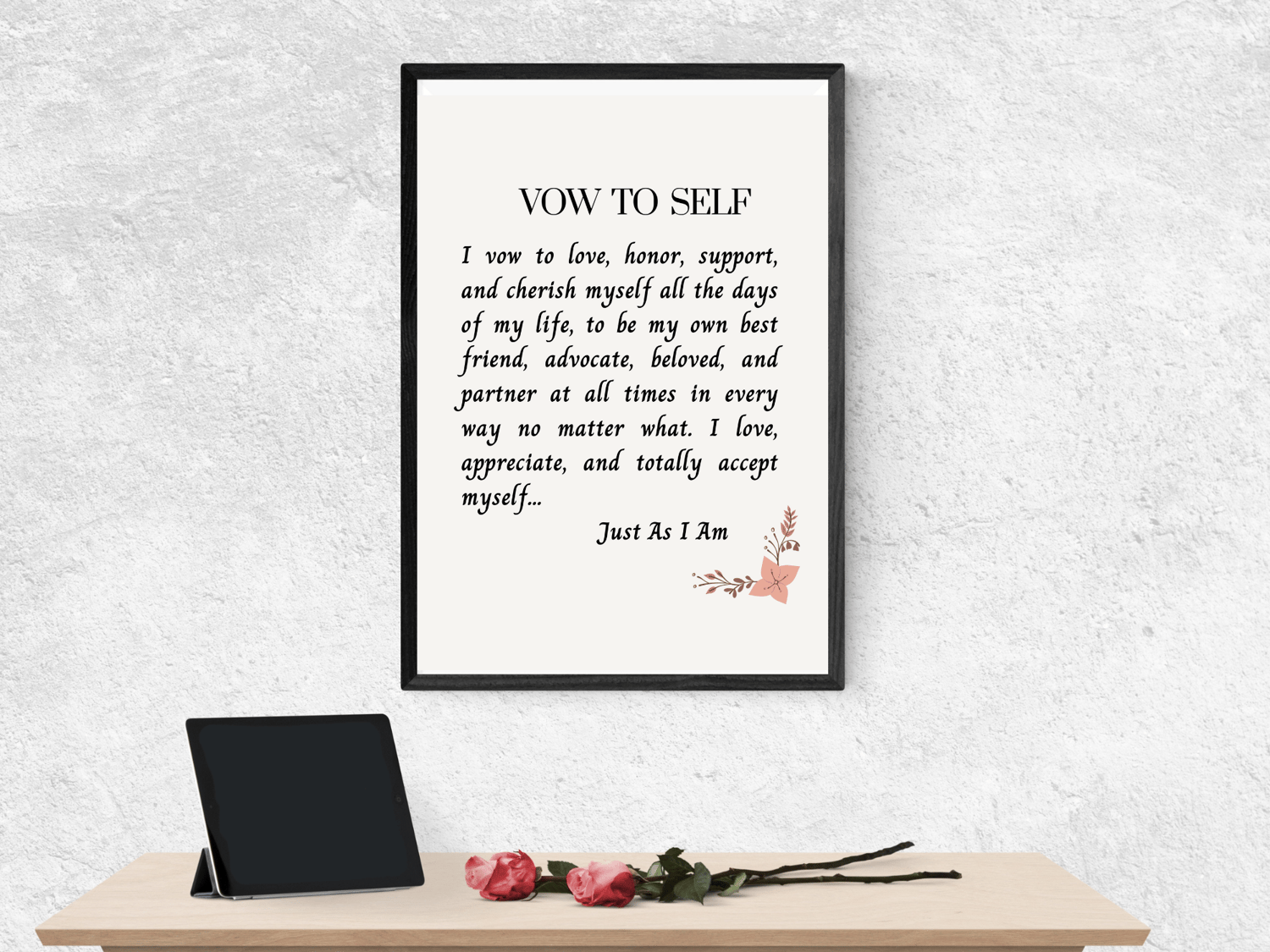 Vow To Self Affirmation Poster, Inspirational Wall Art, Digital Download, Gift, Therapist Counselor Office Decor, Bedroom Wall Decor