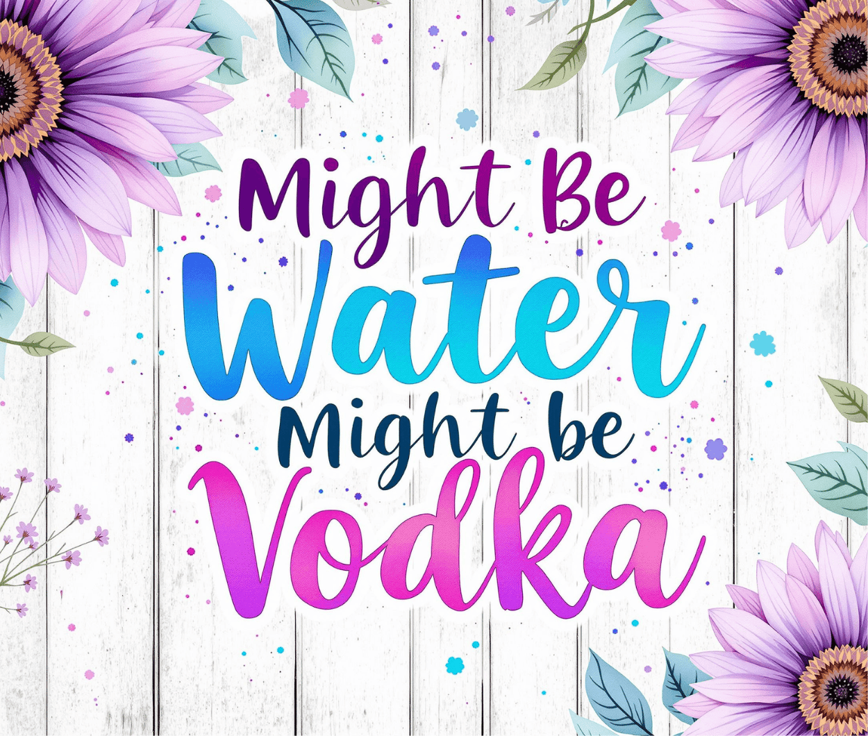 Add a splash of humor to your crafts with this high-resolution sublimation PNG design featuring the witty phrase "Might Be Water, Might Be Vodka" in vibrant ombré lettering. Surrounded by gorgeous purple sunflowers and a rustic white wood background, this design is perfect for creating tumblers, mugs, t-shirts, tote bags, and more. Ideal for crafters, small business owners, and anyone who loves floral sass and surprise drinks!