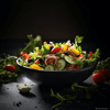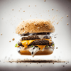 Context: food, editorial, depth of field, bokeh, blur, explosion, hamburger, sandwich, icecream, salad