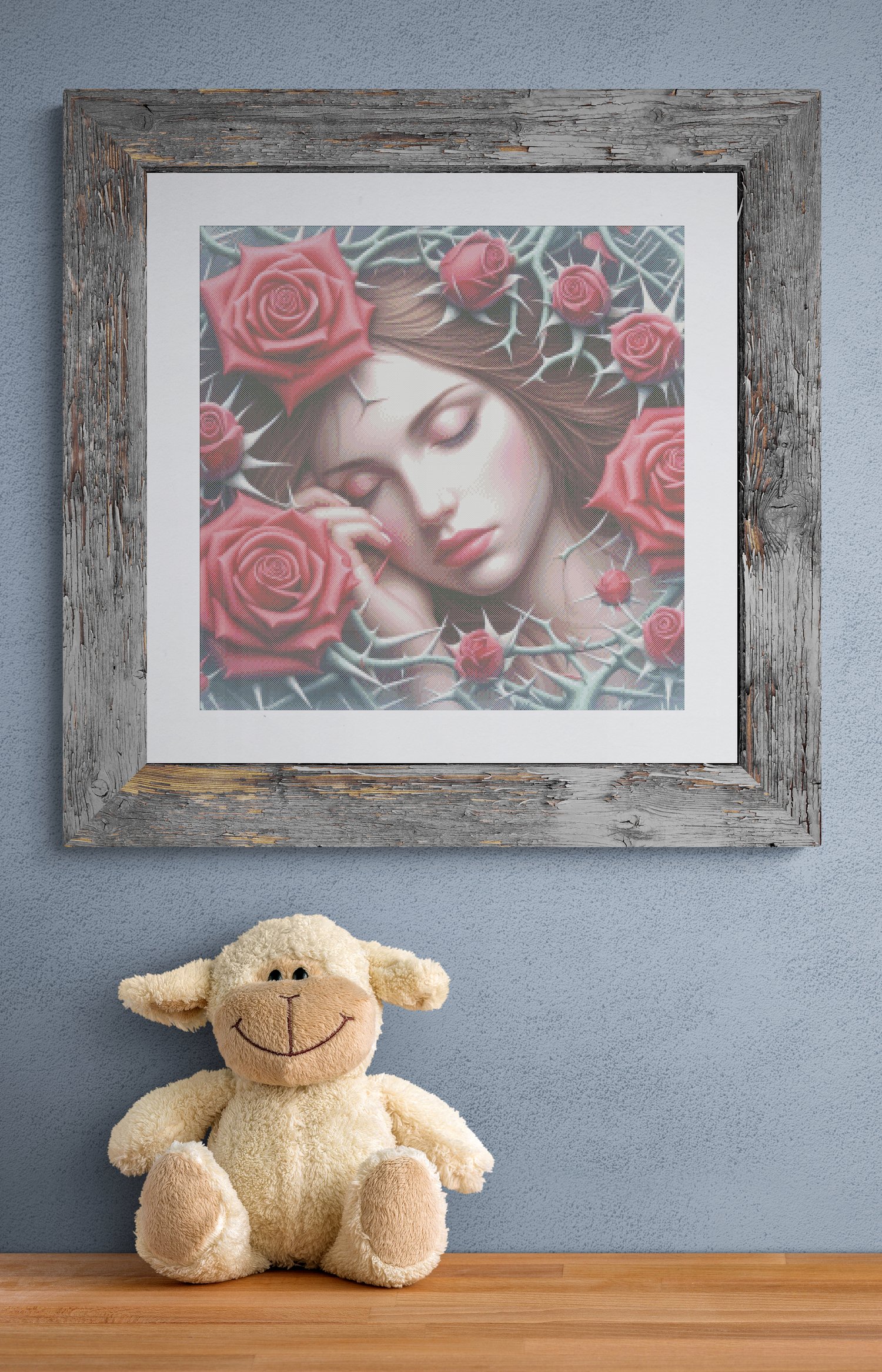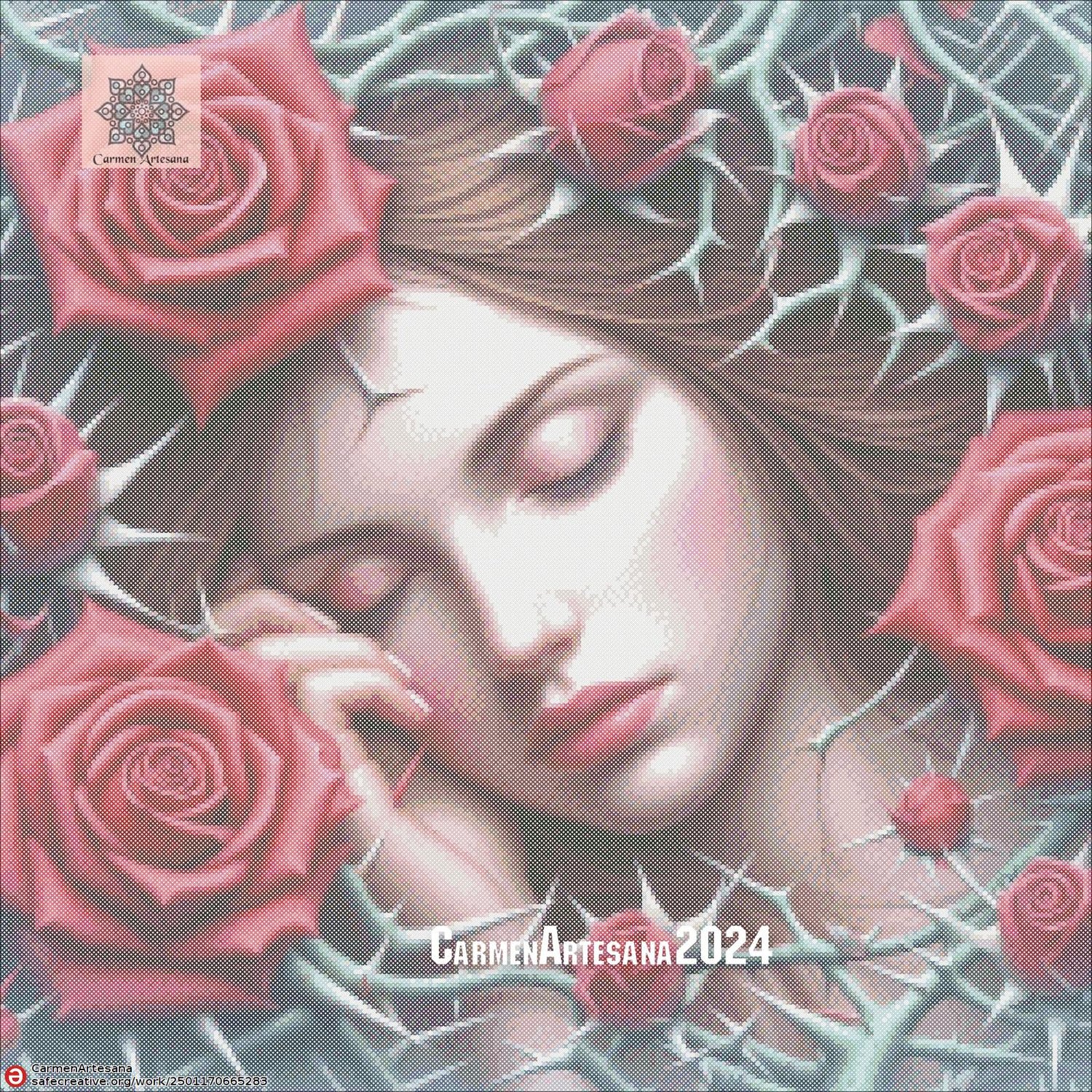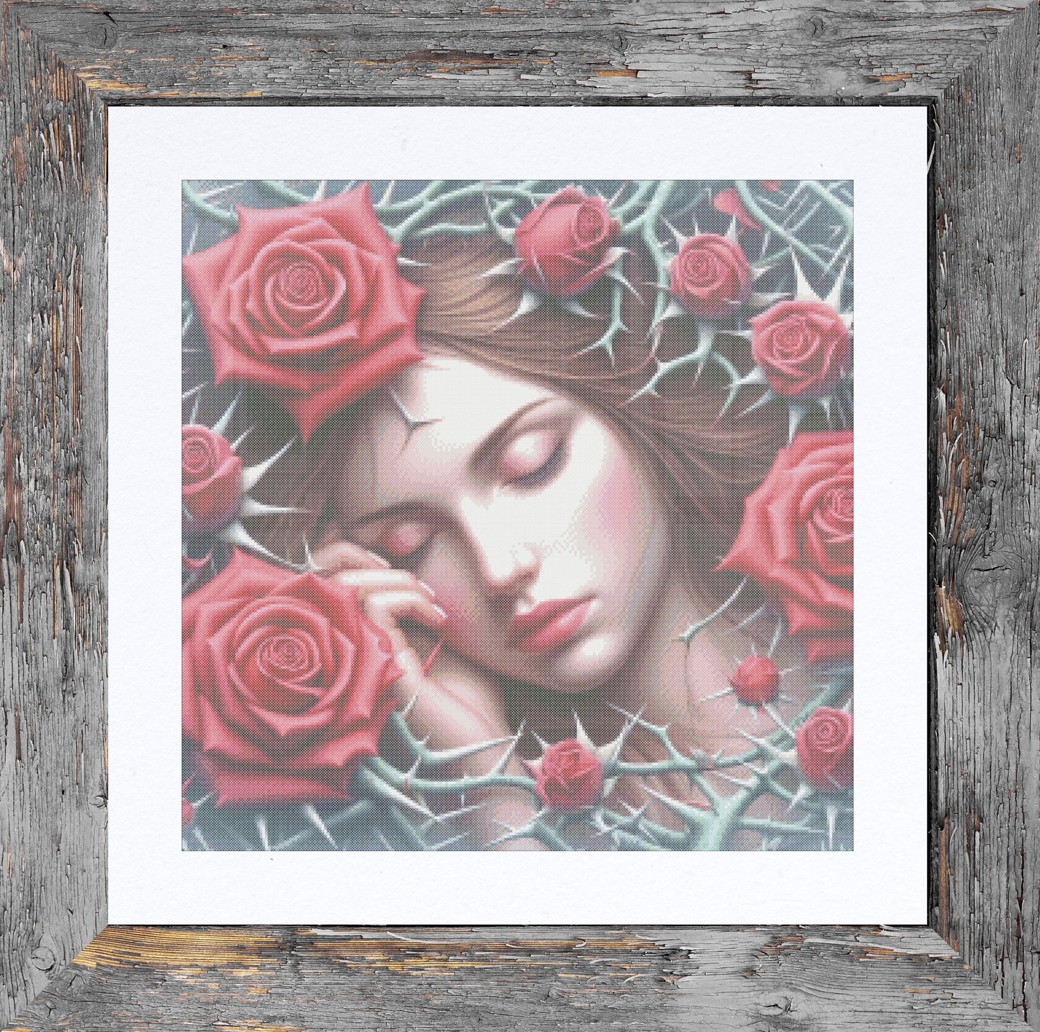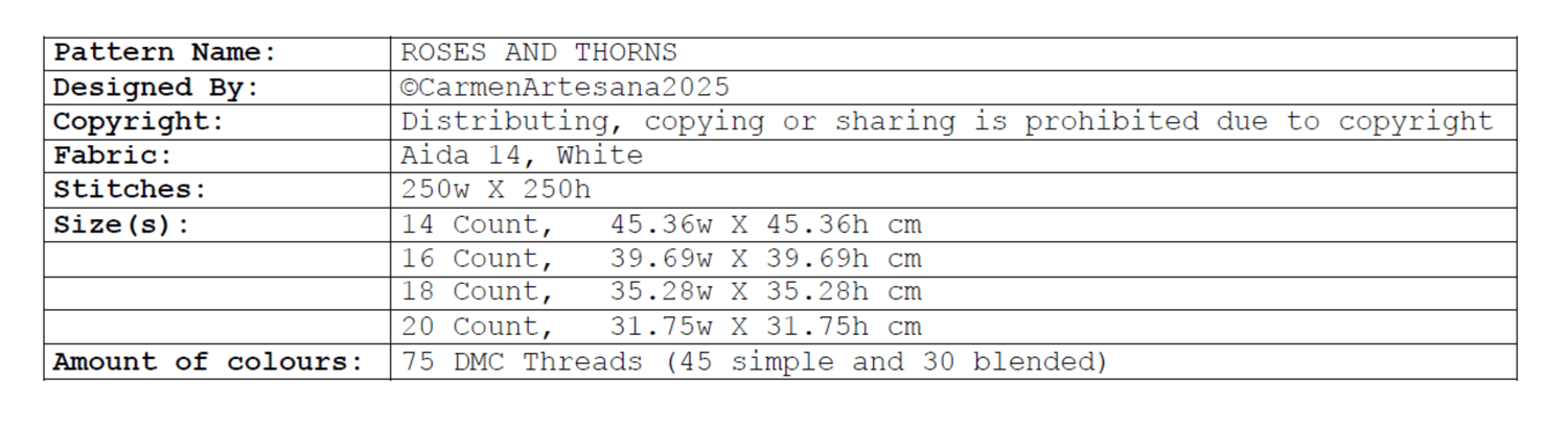 PDF cross stitch pattern, Roses and Thorns, instant download, Englis / Español. DMC Threads
