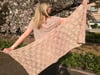 The Hanami Wrap is an all over lace wrap, easy to adjust to make wider/narrower or shorter/longer. The pattern has lace stitches on both RS and WS rows.