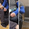 Poor guy! He broke his wrist and arm at the same time! He wears a SAC on the right hand and a LAC on his left arm. Sitting at different places in the waiting room we can see nearly all angles of the cast splints which are covered by blue bandages.