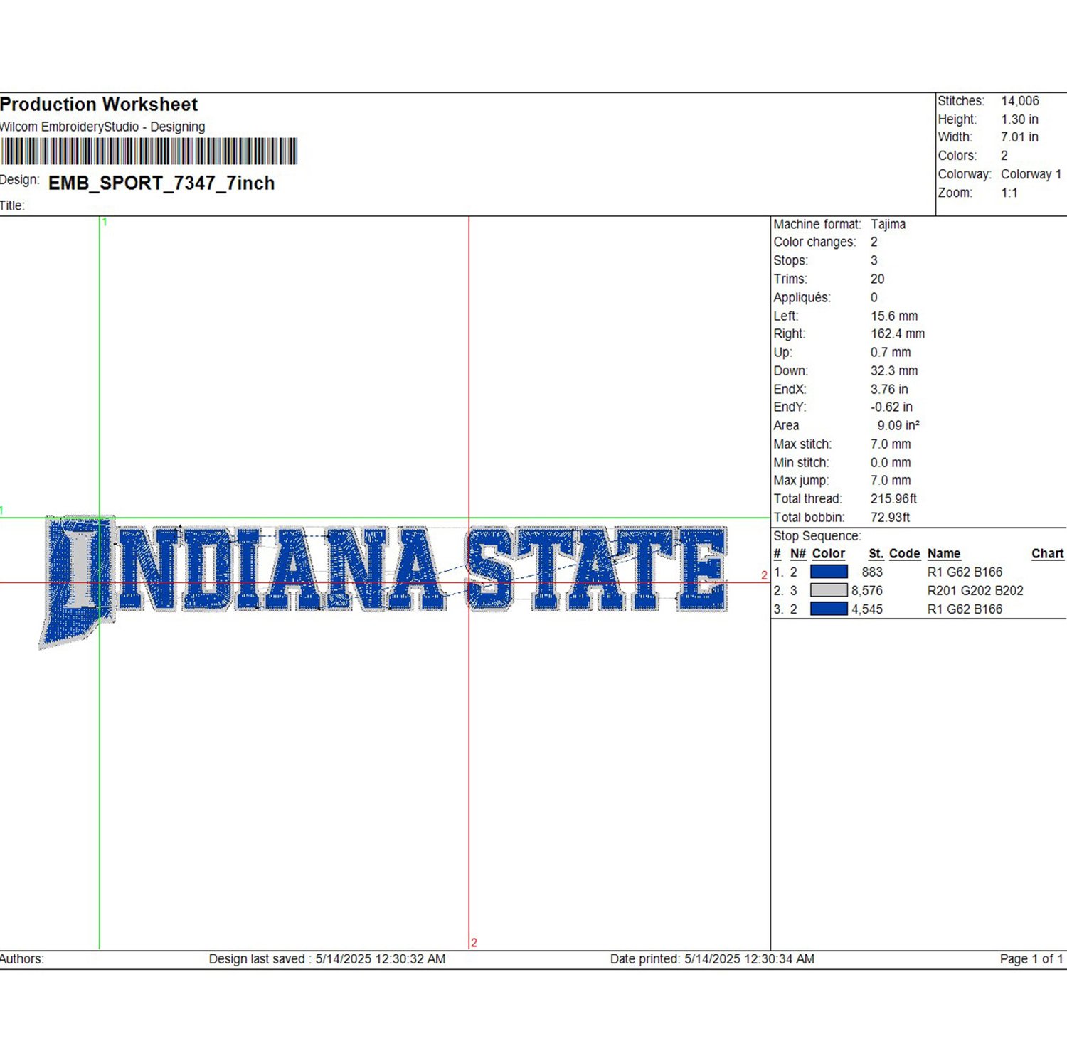 NCAA Indiana State Football Team Wordmark Logo Embroidery Designs, NCAA Indiana State Sycamores Machine Embroidery Files, NCAA Logo embroidery designs, Ncaa Indiana State Logo, Digital Download