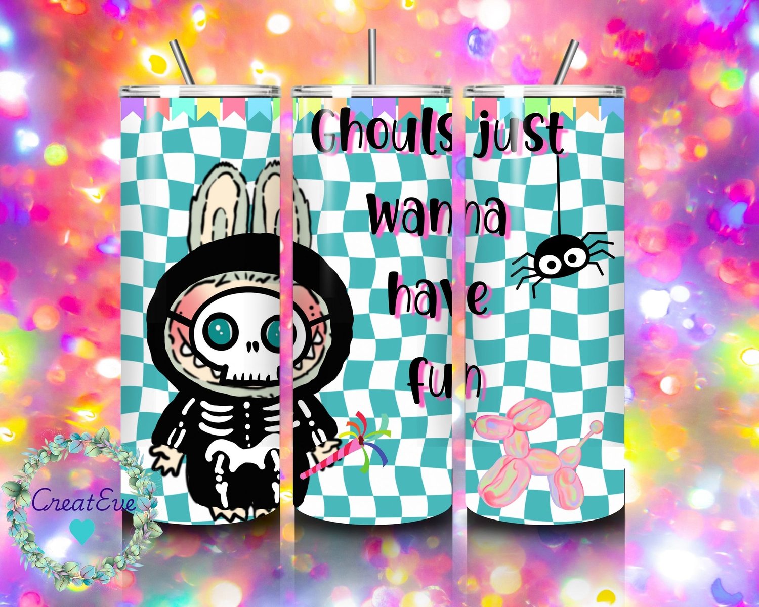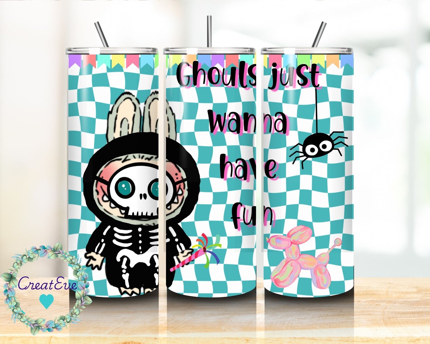 Hand Drawn Halloween Monster Doll 20oz Skinny Tumbler Wrap PNG