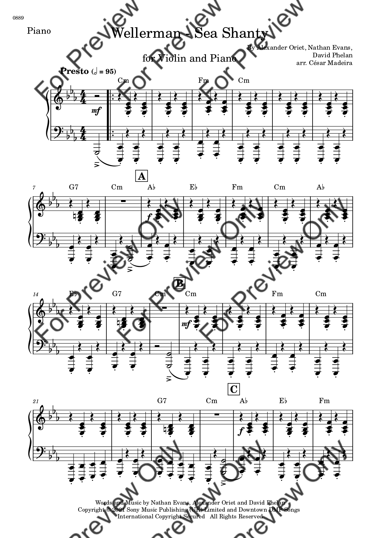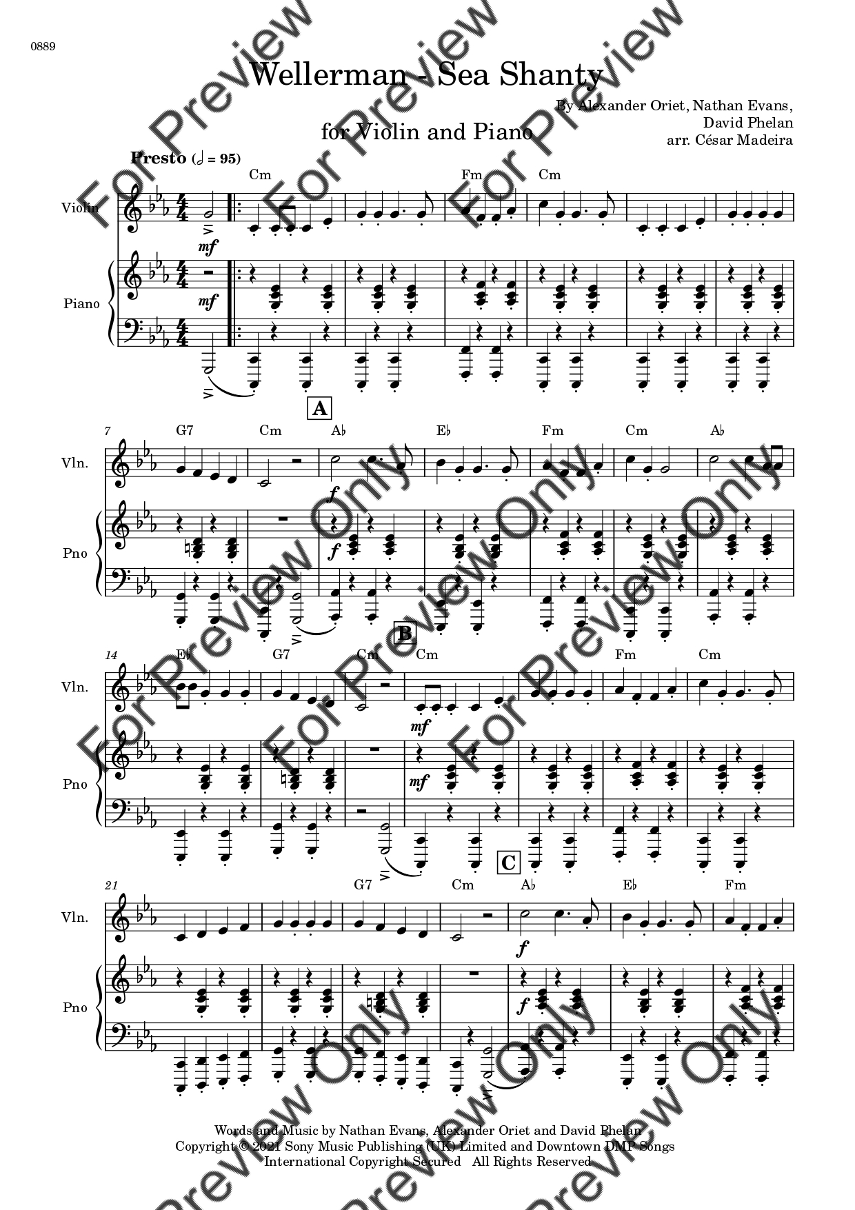 Wellerman (Sea Shanty) by Nathan Evans. Arrangement for Violin and Piano. With Full Score and Individual Parts. Have fun!