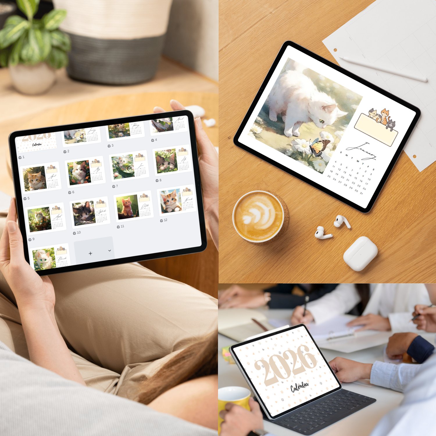 Bring a touch of feline grace to your planning with our Cat-themed Minimalist Photo Calendar. This 13-page digital calendar is designed for cat lovers who appreciate clean, elegant aesthetics. The cover introduces the theme, and each of the following 12 pages features a stunning, minimalist photo of a cat alongside the month and dates. The simple layout with no visible grid keeps your calendar visually clean and focused. It's the perfect way to track your days while enjoying the quiet charm of your favorite animal.