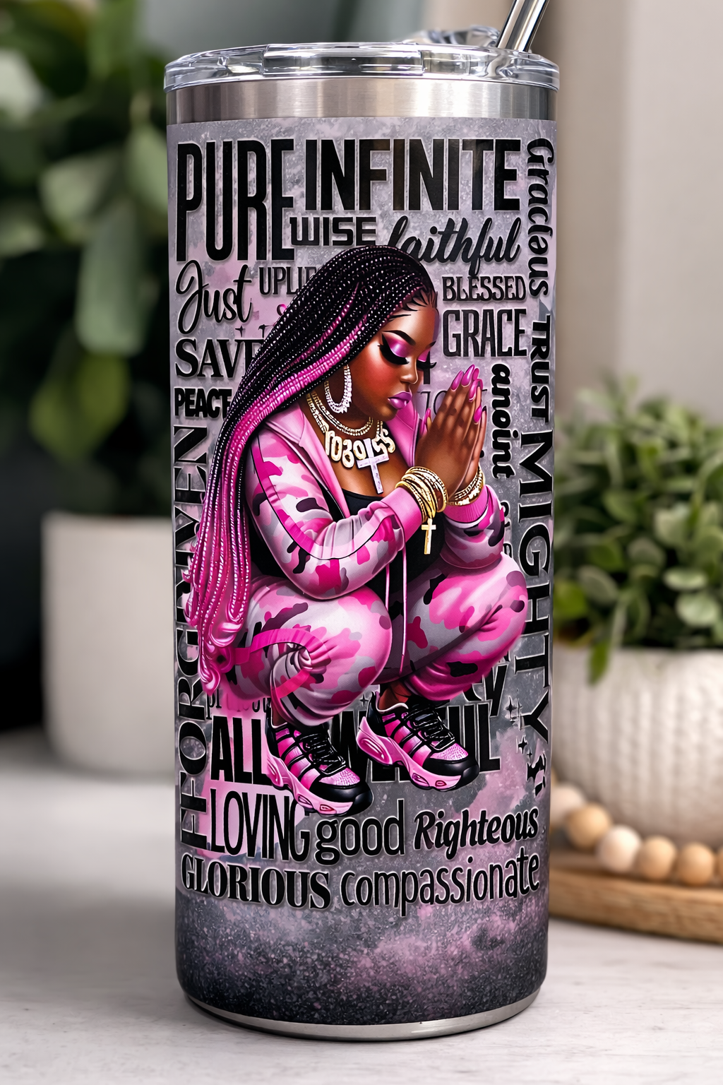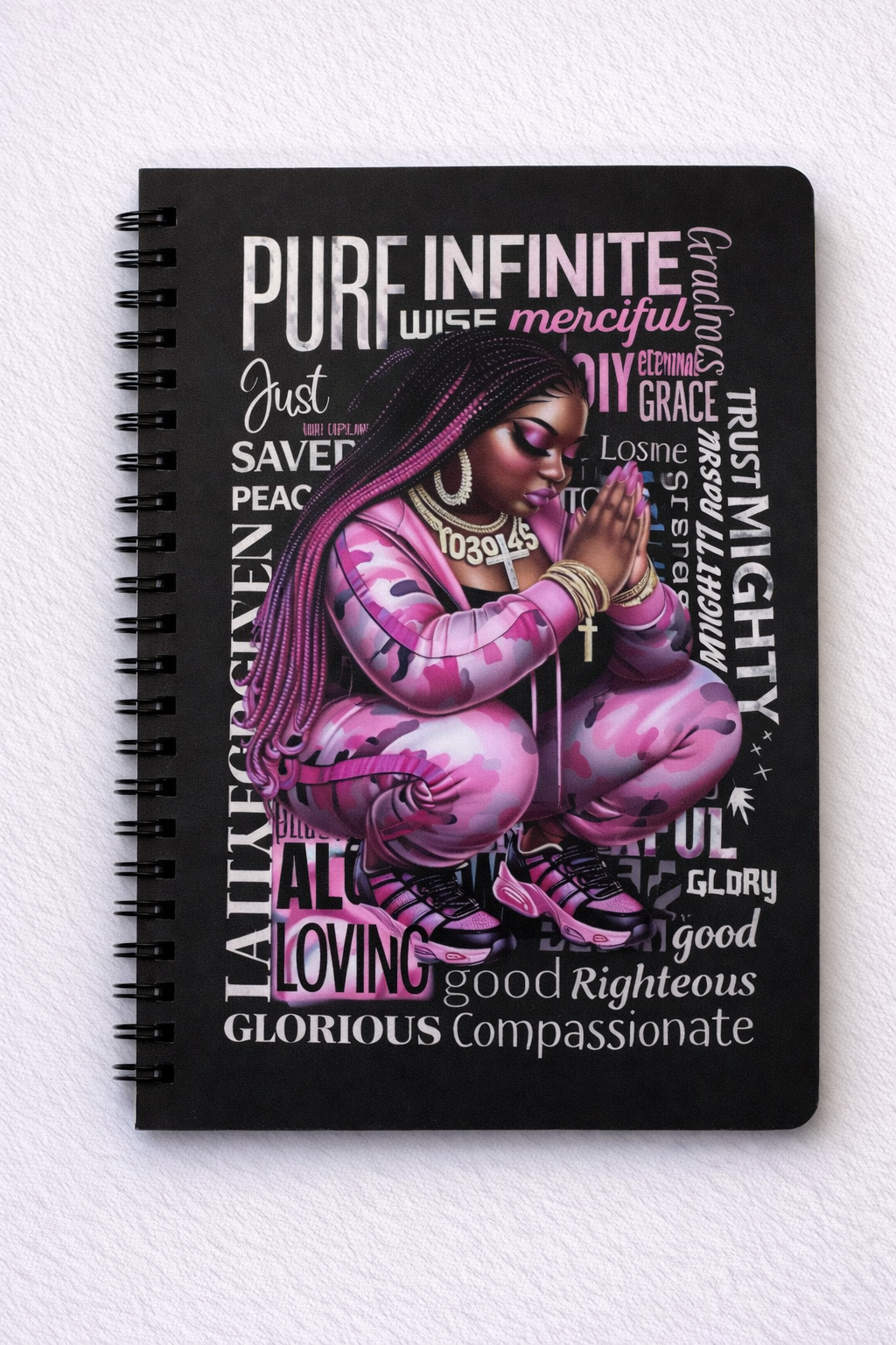 This beautiful design features a praying woman surrounded by powerful inspirational words