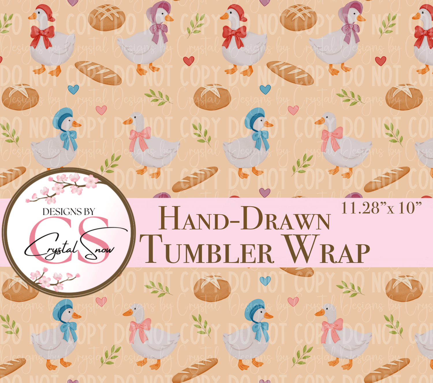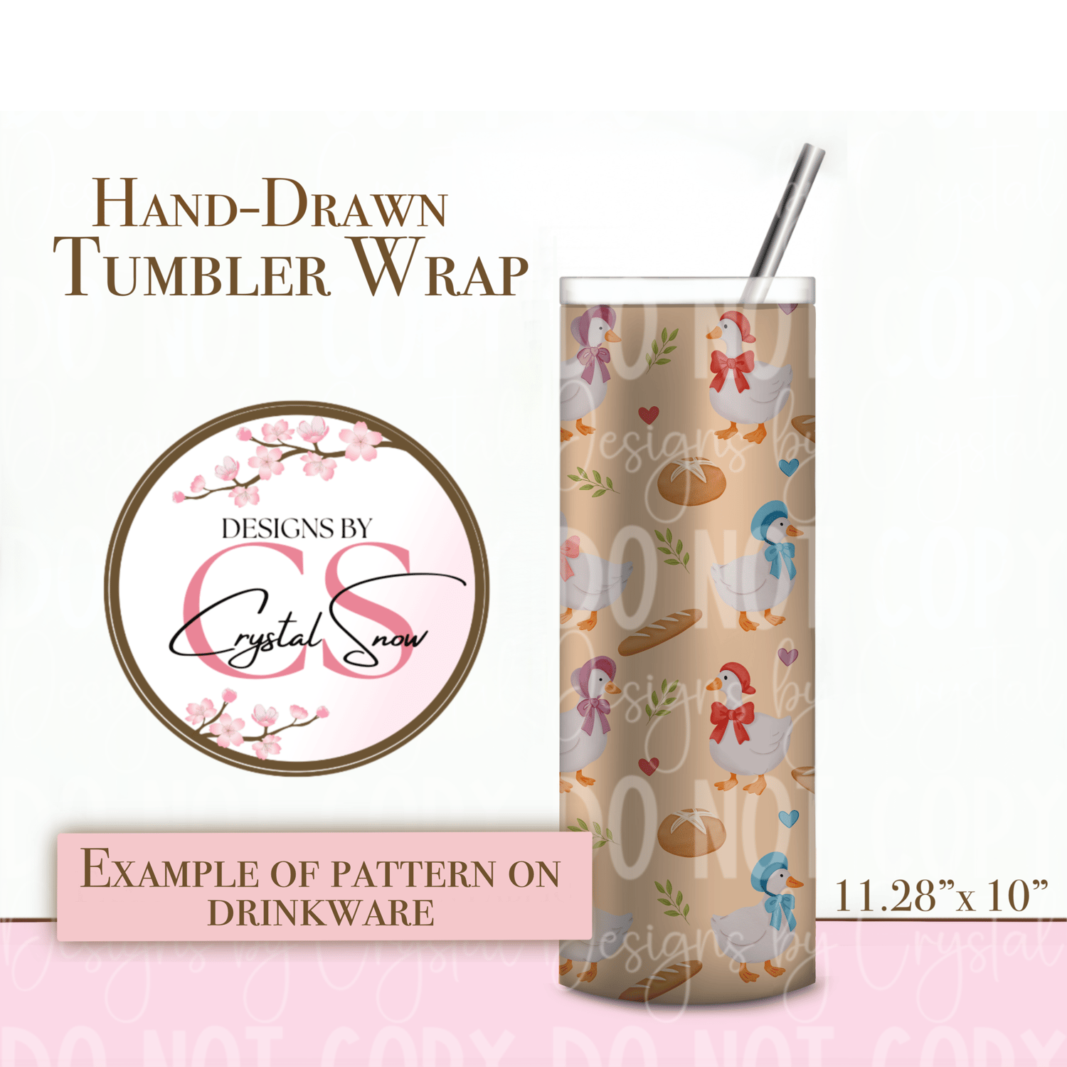 Geese Cottagecore Tumbler Wrap PNG for 20 oz & 30 oz Skinny Tumblers | Seamless Goose Pattern | Sublimation Digital Download