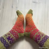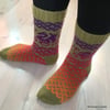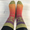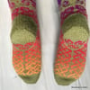 These socks can be knitted on dpns, by magic loop, or on a short circular (in which case you will still need dpns for the heel and toe decreases).