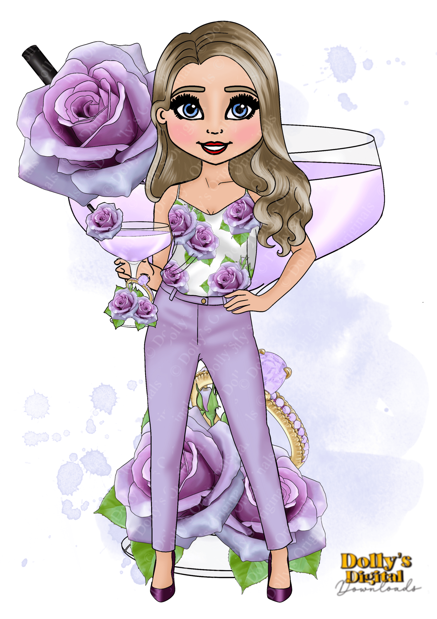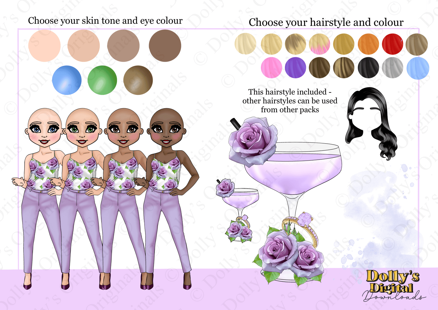 Instant digital download of our Blushing Bride Lilac Rose Cocktail Dolly Character Bundle PNG (34 PNG’s)