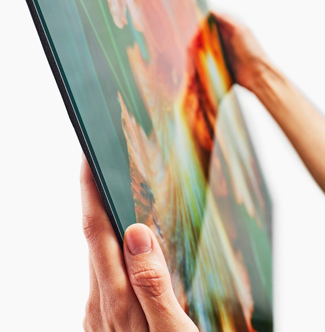 This is a large square shaped acrylic on glass piece of art. Frames are not needed as these pieces come with a mounting attachment in the package when received. But if you feel you would like a frame one can be added for $18. Pictures and paintings have a higher quality when on glass, giving the picture a
