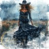 Stylish Cowgirl Dressed in Black PNG Illustration, American Wall Art, Cover Design, Art Prints, Cowgirls, Cowgirl Era, Country Western